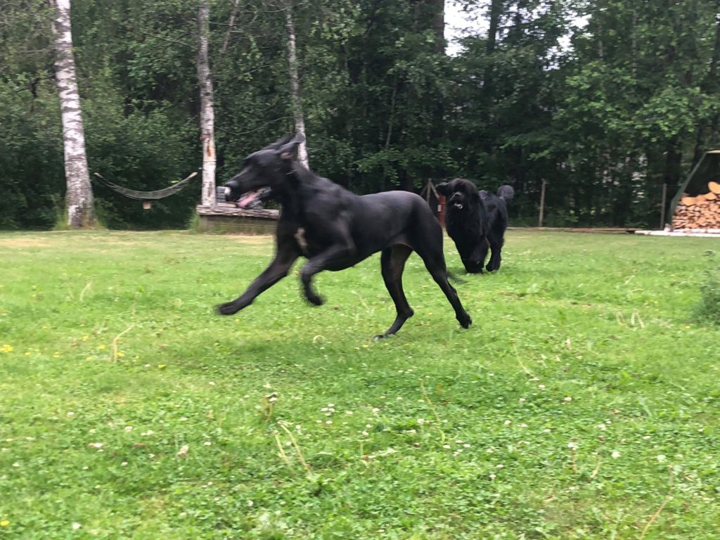 Nemi ja Waldo keksivät tällä kertaa ihan superkivan leikin: Waldo tarttui Nemiä kaulanahoista ja “talutti” Nemiä pari pientä kierrosta ympäri. Sitten, joko Nemi kaatui itse tai Waldo kaatoi Nemin, mutta hetken taluttelujen jälkeen Nemi makasi maassa selällään tai kyljellään. Ja kun Waldo yritti “kävellä yli”, Nemi ponnahti ylös ja juoksi hirveän hepulijuoksukierroksen pihan ympäri (Waldon tullessa merkittävästi pienempää rinkiä perässä juosten). Sitten vauhti pysähtyi, Waldo alkoi hamuta kaulanahkaa ja sama kaava alkoi alusta. Kai se sitten oli kivaa, kun tätä tehtiin lukuisia kertoja peräjälkeen. 🙂