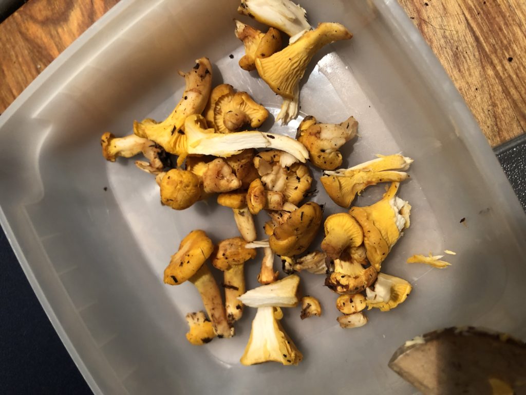 Lähimetsässämme on kesän aikana tehty hakkuutöitä, ja metsäkoneiden tekemät urat ovat avanneet kesän aikana muutaman uuden lenkkipolun meille. Eilen reittiä kävellessämme Mikko bongasi kanttarellejä, useammastakin kohtaa. No ja minä vain kävelin niiden ohi mitään huomaamatta – tästäkin syystä Nemin nenä tulee tarpeeseen, jos meinaan sieniä löytää. 😉 Onneksi mukana oli tyhjä kakkapussi; sain napattua pienen satsin pikkusieniä mukaan – näillä lähdettäisiin treenaamaan seuraavaa hajua Nemille. Painoin myös paikat tarkasti mieleeni: tiedän ainakin, mihin tulla treenaamaan Nemin kanssa kantarellien etsintää 🙂
