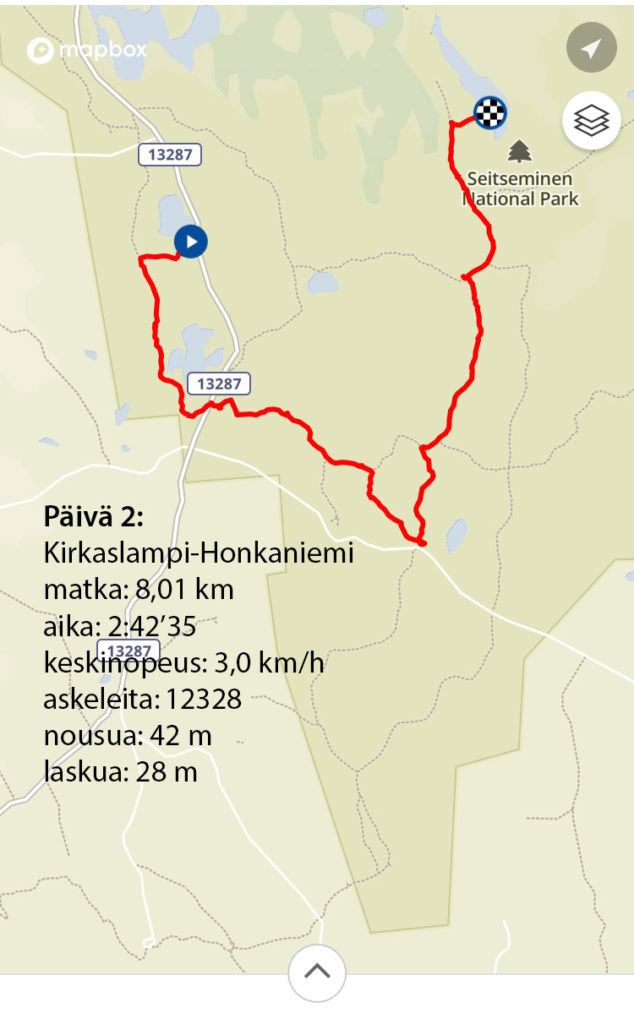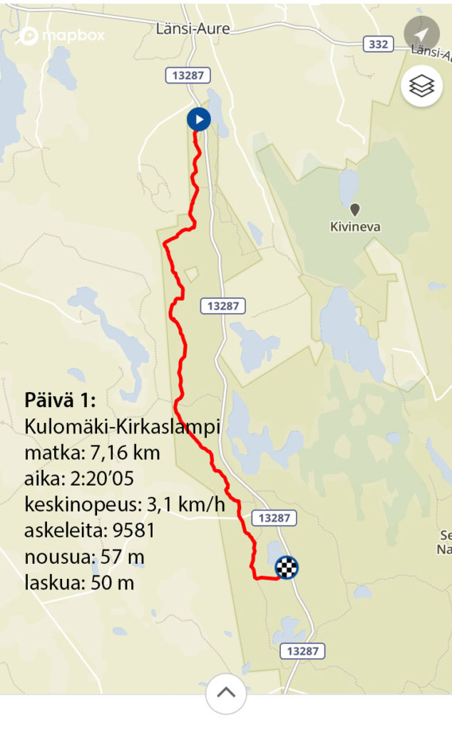 Suunnitelmana oli olla maastossa kaksi yötä, ja kulkea 25,9 km pitkä Virkatien lenkki. Toisena vaihtoehtona olisi tarvittaessa lyhentää reissua 18,8 km mittaiseen Seitakierrokseen. Vaihtoehtoja yöpymispaikoiksi oli mietitty ennen kaikkea vesihuollon järjestymisen puitteissa – olisi luvassa lämpöisiä päiviä, pitkiä kävelymatkoja ja olisimme keitettävien luonnonvesien varassa.