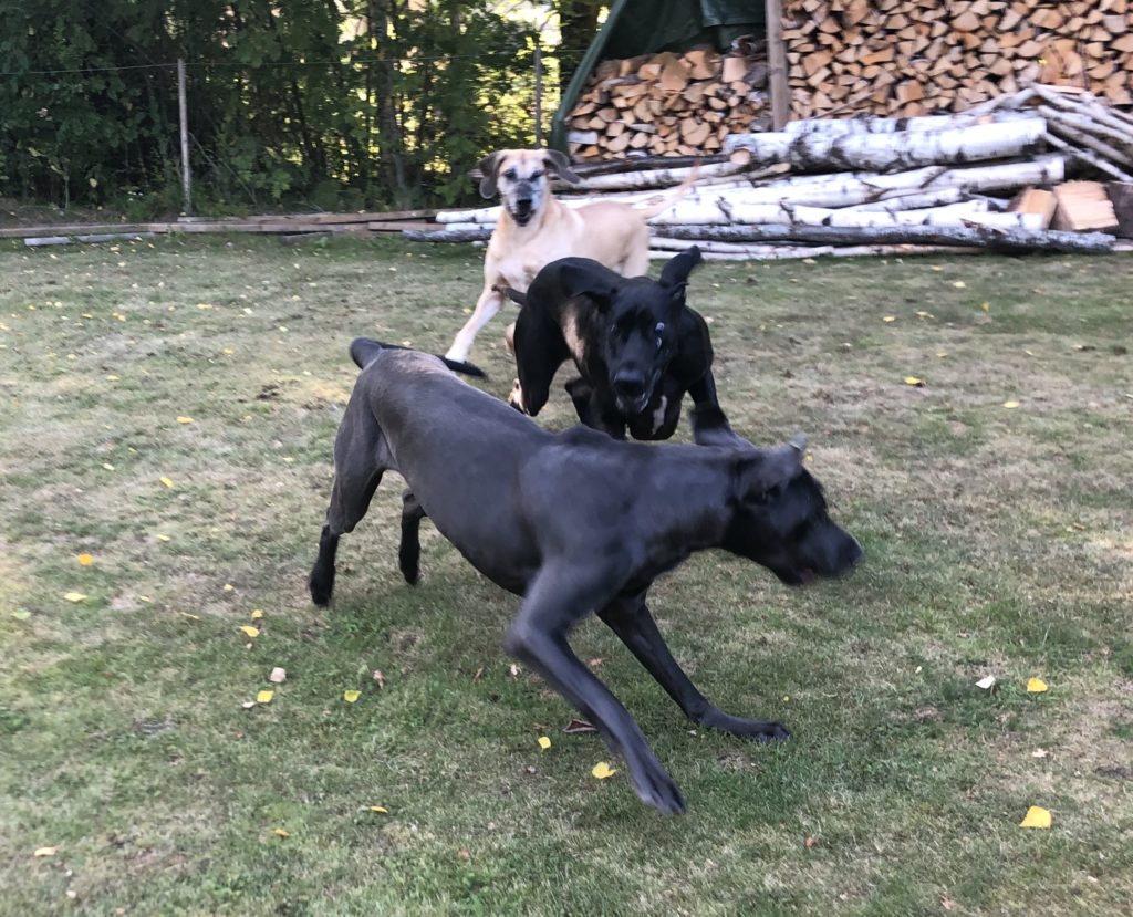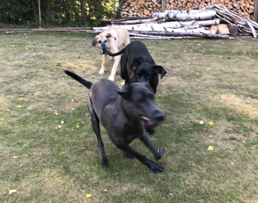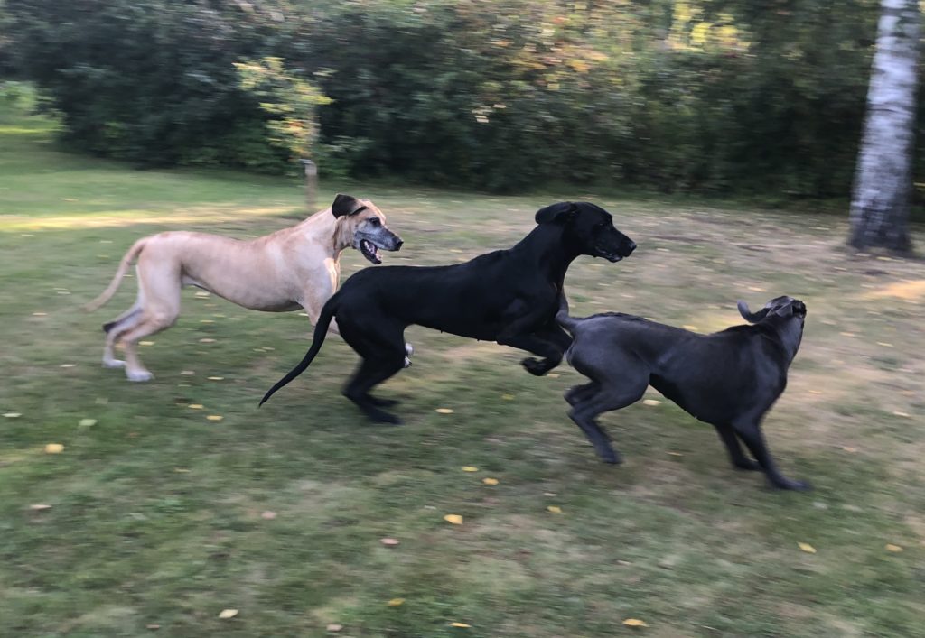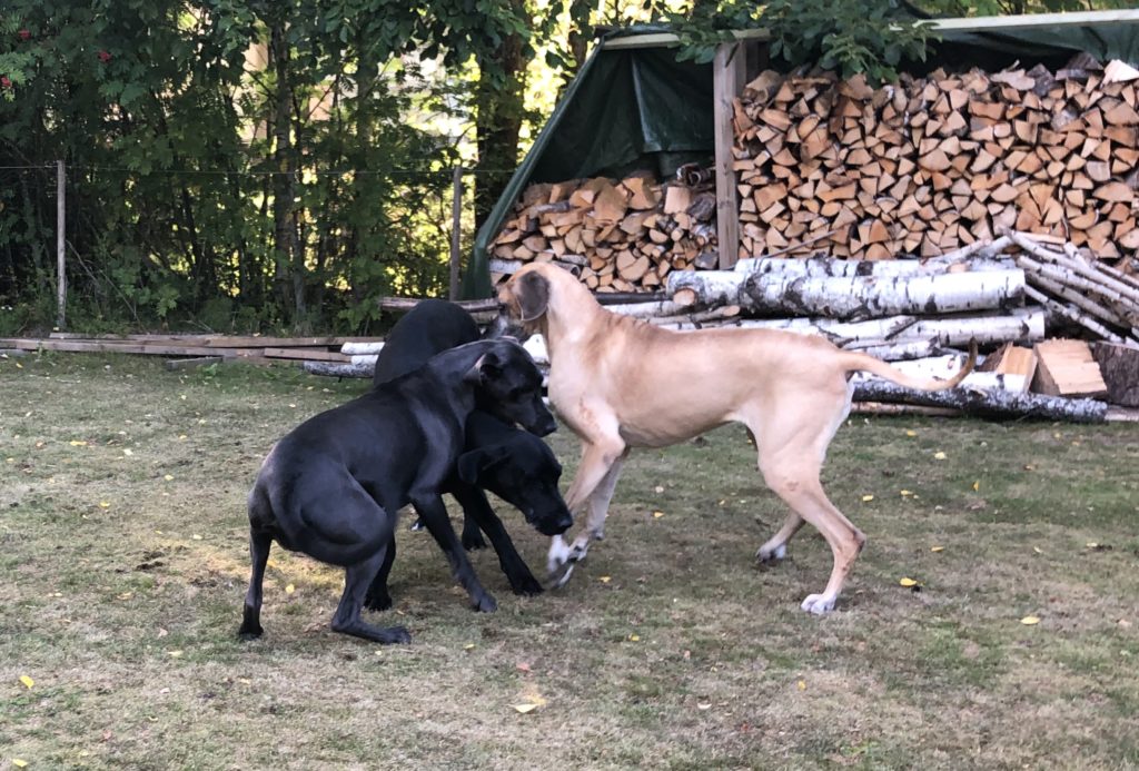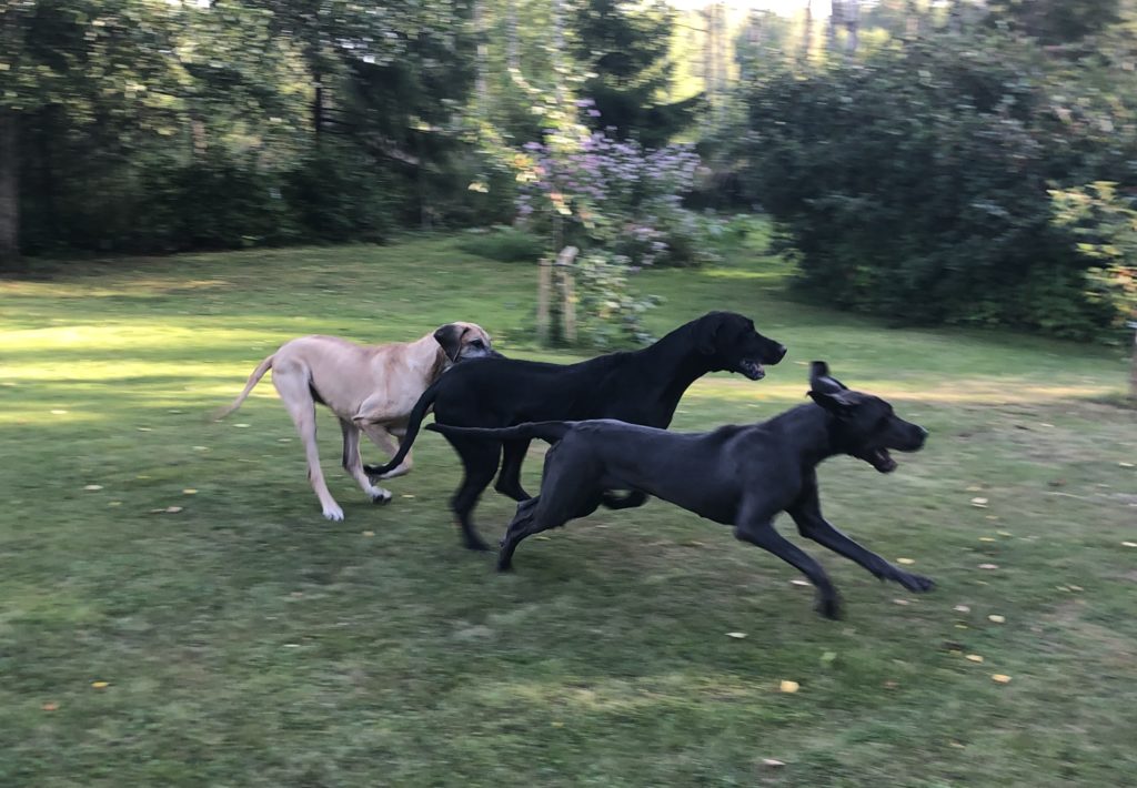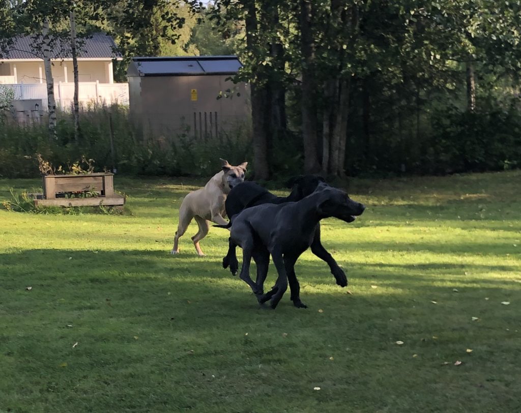 Sitten kun lupa oli saatu, lähti kolmikko kaahaamaan pihalla enemmän ja vähemmän (enempi sitä enemmän) vauhdikkaasti – ikävä on ollut kova, onhan edellistapaamisesta on kulunut aikaa jo … ainakin kolme viikkoa!