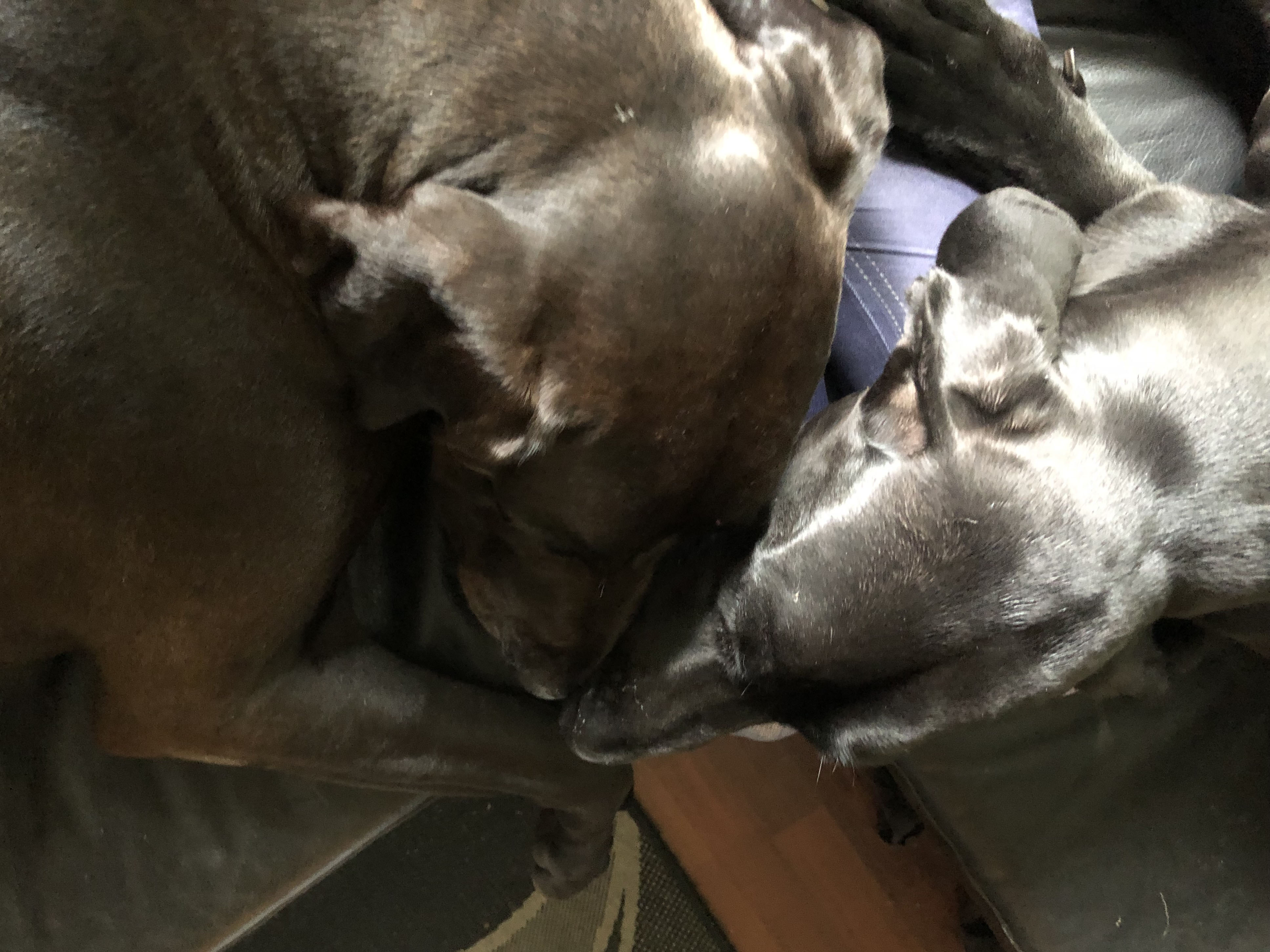 Koirat asettuivat nukkumaan eri huoneisiin, mutta ei kulunut kauaa, kun Nemi lähti liikenteeseen. Osasin jo arvata, että se lähti etsimään veljeä. Mutta miten ihanan näyn näinkään, kun menin katsomaan ja näin koirat yhdessä:
