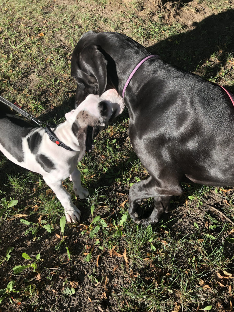 Jos Nemi tykkäsikin kaikista paikalla olleista koirista ja ihmisistä, niin ihan ennen kaikkea se ihastui pieneen harlekiinilapsoseen – ja ihastuminen oli aivan ehdottomasti molemminpuolista! Saattaapa olla, että tätä penneliä me tullaan tapaamaan vielä myöhemmin, kertoillaan siitä sitten aikanaan lisää. <3