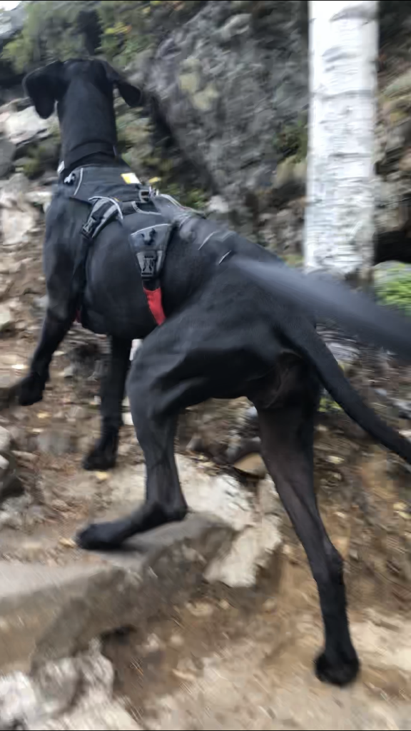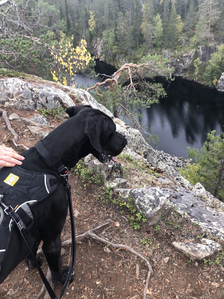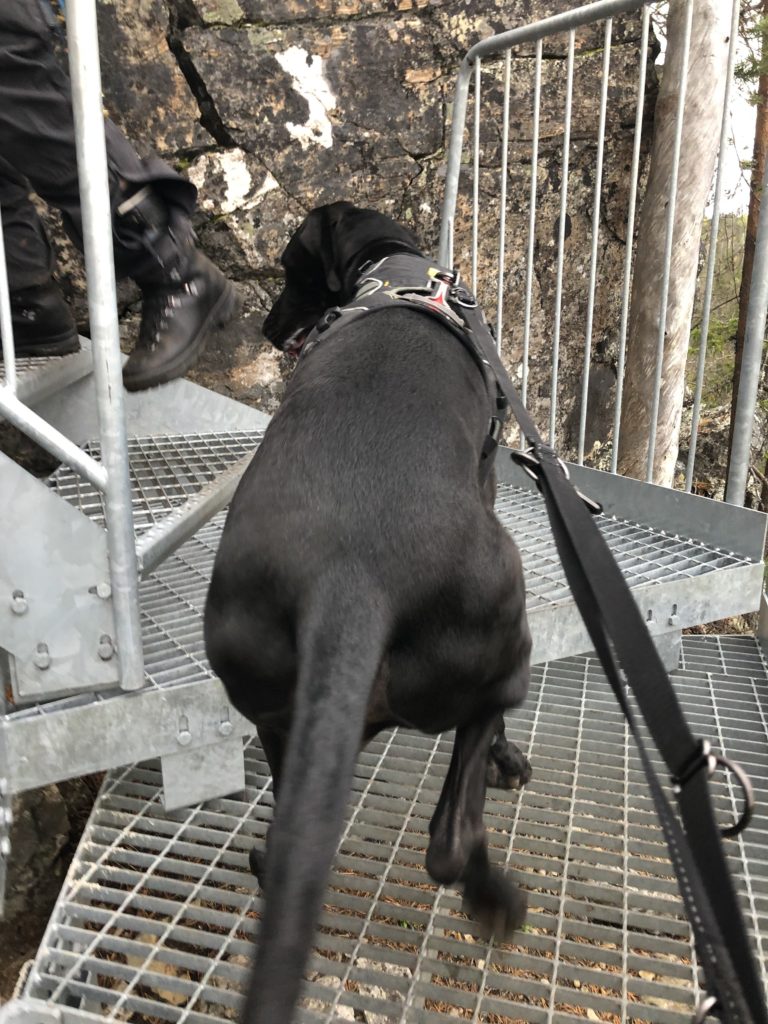 Ylös päästyämme harjanteella tuli vastaan kaksi naista. He sanoivat, että olivat kuulleet jatkuvat kehu- ja kannustushuutomme portaissa ja olivat miettineet, että toivottavasti siellä kannustetaan koiria, eikä ihmisiä… 😀