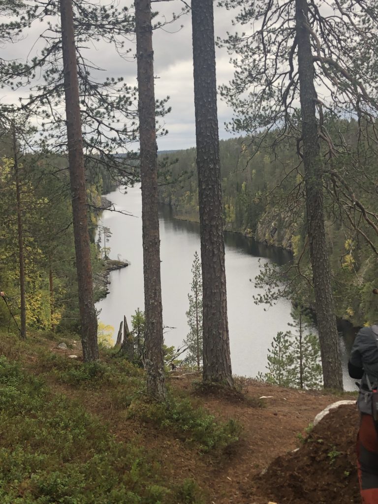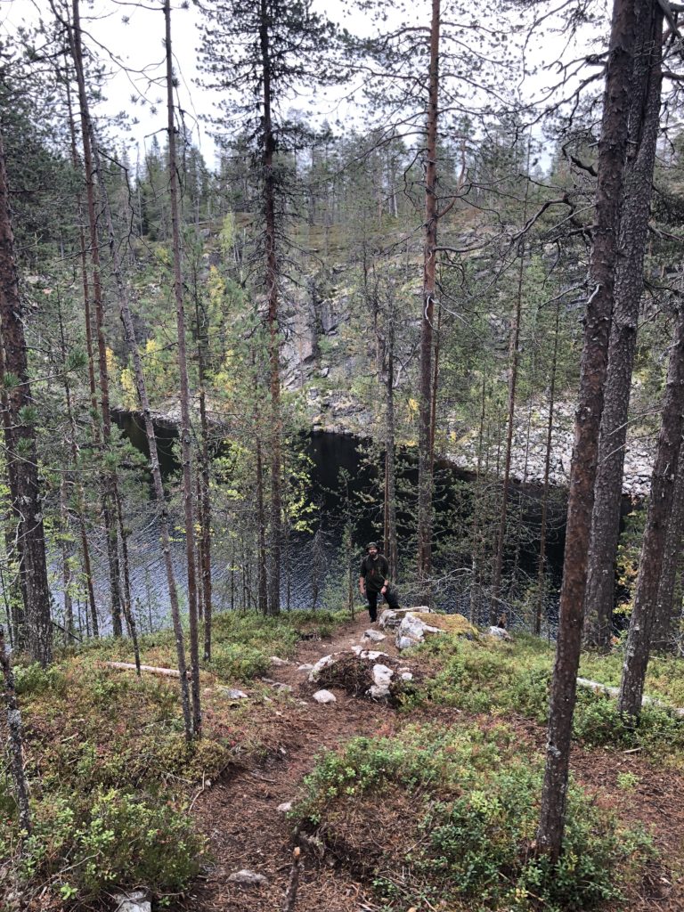 Paluureitti oli suurimmaksi osaksi soritettu, ja oli siitä johtuen hyvin helppokulkuista ja selkeää tallusteltavaa. Jäimme pohtimaan, että miten ihmeessä sepeliä on saatu roudattua tänne kanjonin laelle – reilun parin kilometrin matkalle ei ole ihan yksi tai kaksi kottikärryllistä riittänyt. 😀