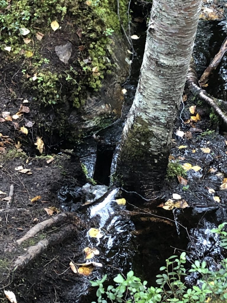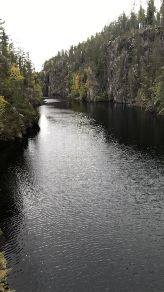 Tietolaatikko (sekä Wikipedia) Ölkky-rotkon alkupäässä osasi kertoa, että kanjoni on syntynyt aikoinaan maanrepeämästä ja vesi kanjoniin tulee lähteistä ja valumavesinä. Kanjonin seinämien korkeus on jopa 50 metriä, ja syvyyttä kanjonissa on toiset 50 metriä. Aika korkeallakin ollaan; vedenpinta on 243,8 m merenpinnasta. (Sivuhuomautuksena pakko mainita: samalla tavalla repeämällä syntyneitä rotkolaaksoja edustavat Suomessa Virroilta löytyvä Toriseva sekä Helvinjärven kansallispuistossa oleva Helvetinkolu – Check! Olemme tällä porukalla käyneet näillä kaikilla! :D)