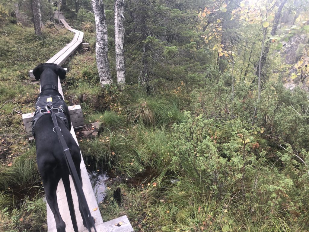 Parkkialueelle päästessämme oli matkaa kertynyt 5,87 km ja aikaa kulunut melkein 2,5 tuntia. Päivän kokonaissaldona (Hakokosken hujaus mukaan luettuna) siis 10,59 km reippailua Hossan kansallispuistossa.