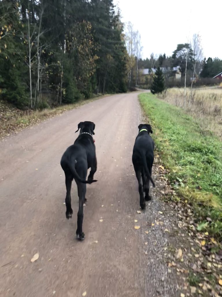Me ollaan käyty tekemässä joku hihnalenkkikin, mutta pääsääntöisesti ulkoilut on tehty lähimetsässä. Luca kulkee lenkeillä väsymättä mukana tasan niin paljon kuin me muutkin – toki se viisaana aikuisena koirana osaa säästellä itseään, ja antaa Nemin töhöttää sata lasissa -spurtteja ihan keskenään. 😀 Tosin tänään päivällä se jopa innostui leikkimään ja juoksemaan Nemin kanssa pihalla (vanha herra vähän revitteli!) 😀