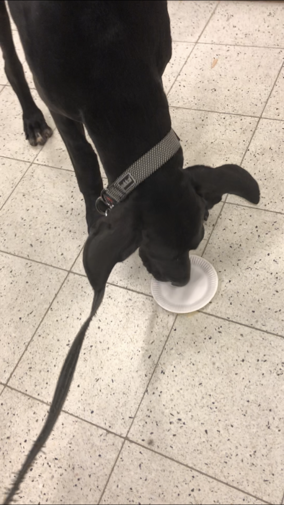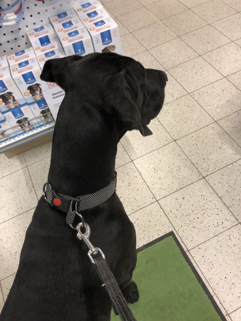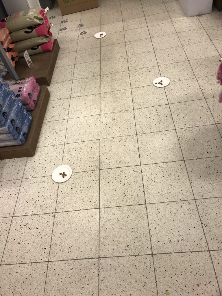 Yhteislenkin lisäksi meillä oli myymälässä pientä aktivointia koirille: leikkimielinen namirata, joka piti suorittaa tietyssä järjestyksessä. Nemi jäävättiin kisaan osallistuvista, mutta se sai toimia radan testisuorittajana. Rauhallisen noin 35 sekunnin suorituksella tiesin, ettei se muutenkaan tulisi olemaan kärkikahinoissa radan nopeiten suorittavien kanssa (voittoaika taisi olla vain vähän alle 11 sekuntia) 🙂