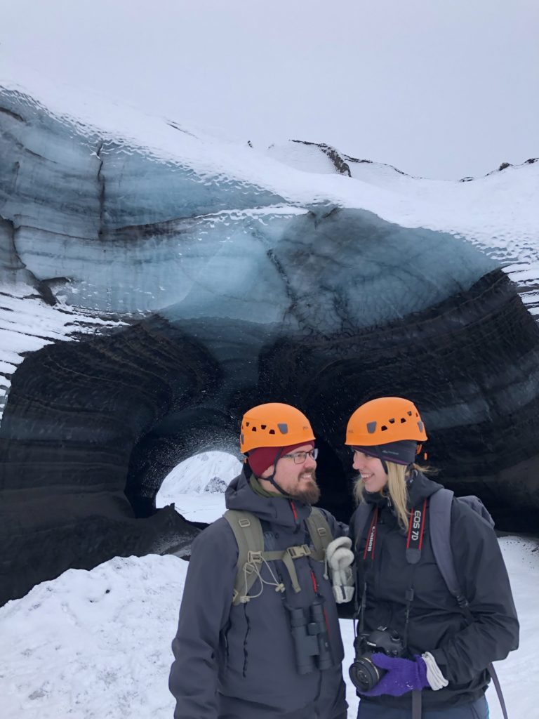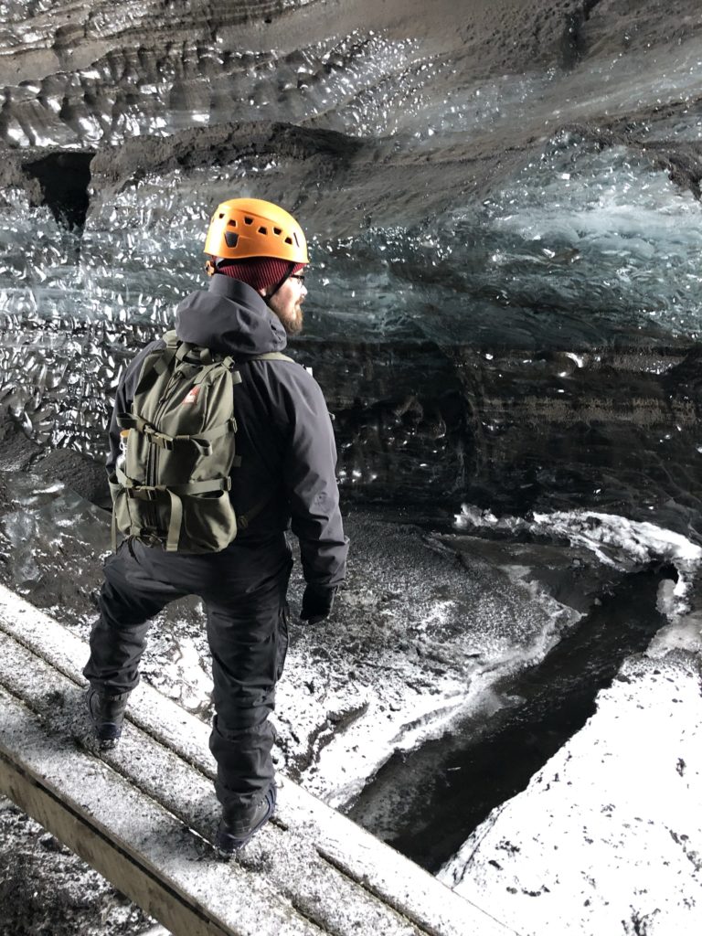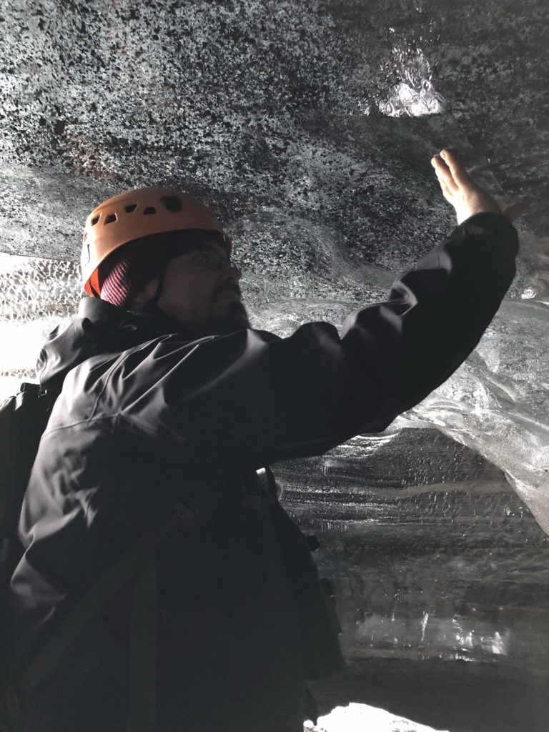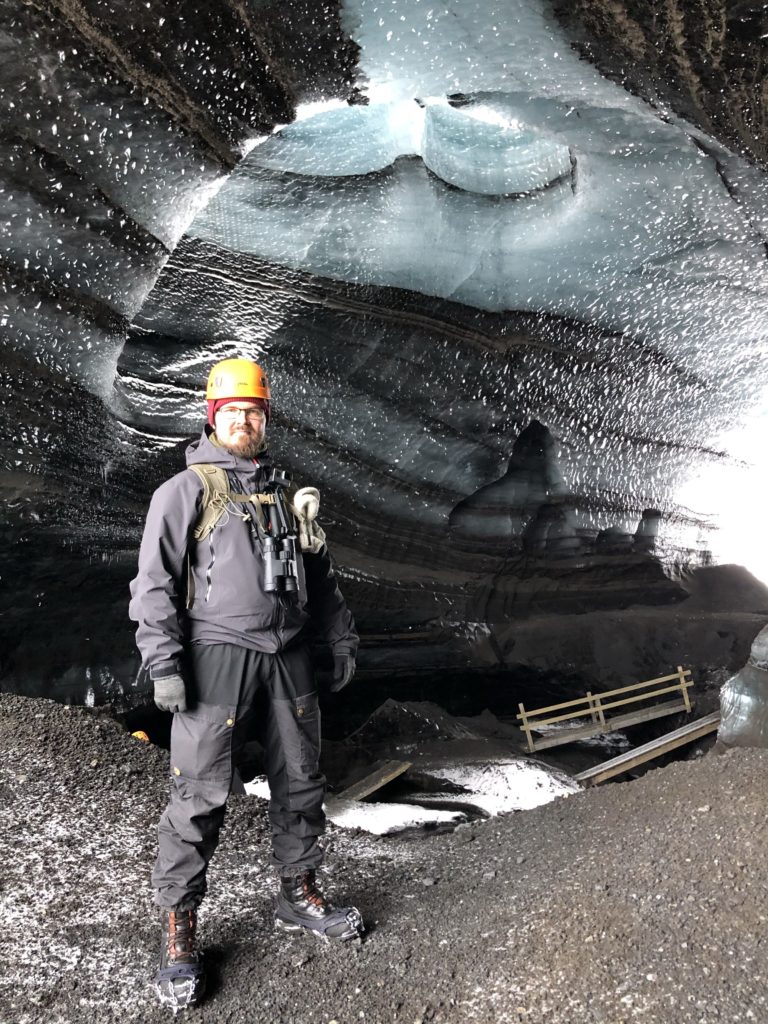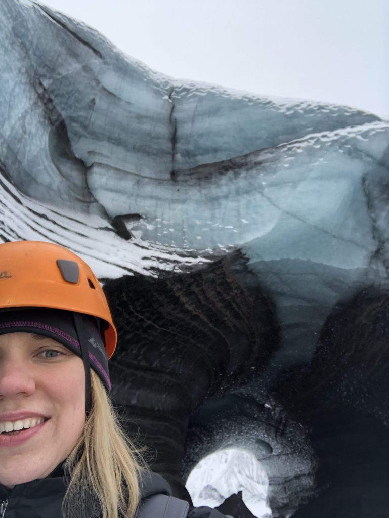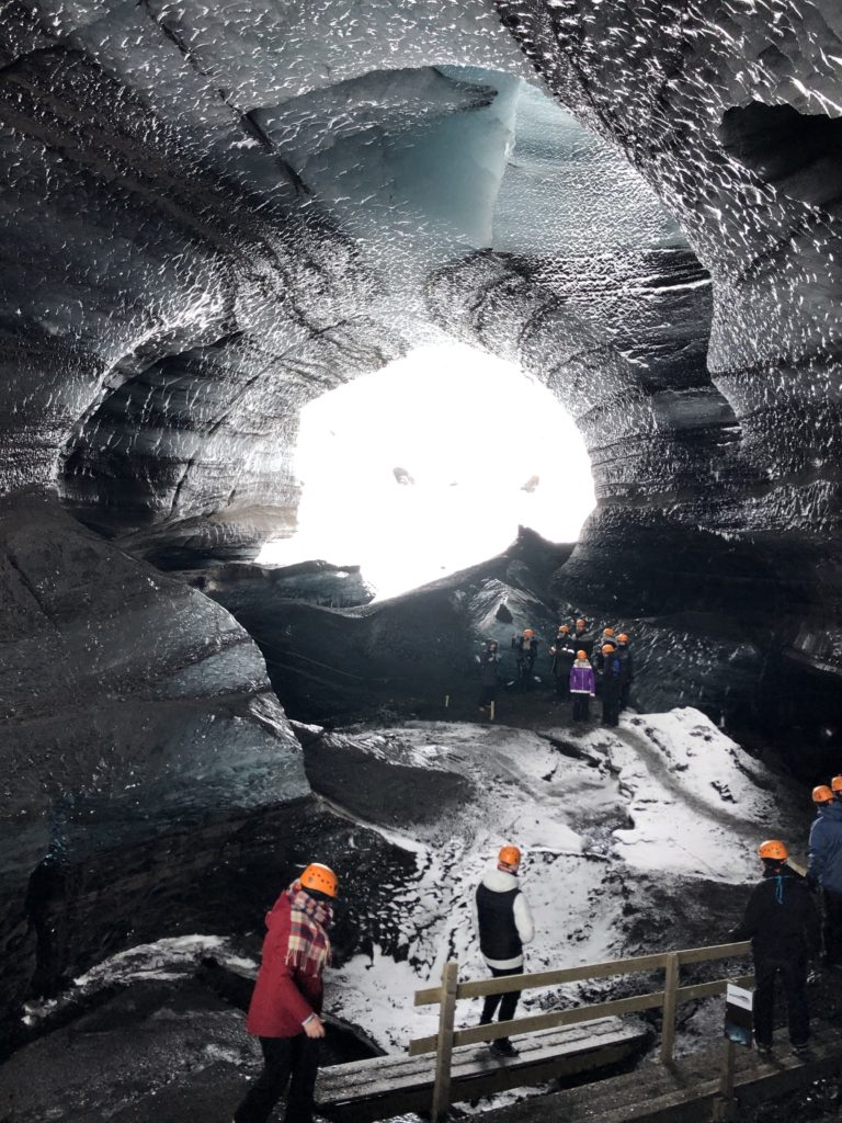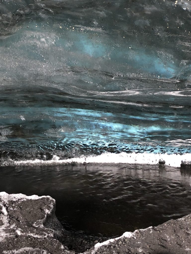 Useat eri värikerrostumat kertoivat omaa kieltään jään sulamisen vaiheista ja samalla jään iästä. Jääluola lähtee muodostumaan jäätikön sulamisvesistä. Jäähän tulee pieni halkeama, johon vettä alkaa kertymään ja pian siihen muodostuu jääluola. Tähän tapaan muodostuvat myös jääluolan kattoon ilmestyneet reiät. Oppaamme osasi kertoa, että uusia luolia turistien ihmeteltäväksi etsitään sulamisvesien puroja seuramalla. Tämä tunneli on löydetty noin 18 kk sitten, ja läpikuljettavaksi asti se on sulanut noin 8 kuukautta sitten. Parissa vuodessa tätä kyseistä jääluolaa tuskin enää on olemassa, vaan se on ehtinyt sulaa jo kokonaan pois. Jään sulamisen nopeus on surullista ja vähän pelottavaakin mietittävää.