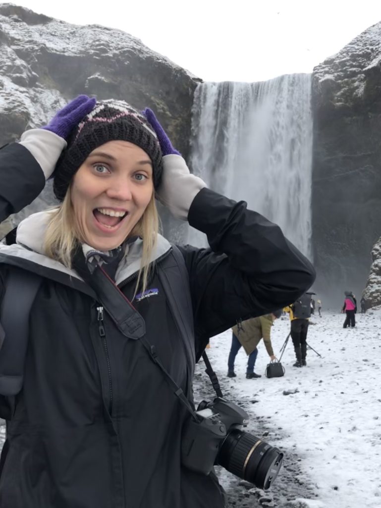 Sunnuntaina oli sitten vuorossa reissumme seikkailuosuus. Hyppäsimme aamulla Arctic Adventures -nimisen yrityksen logolla varustetun pikkubussin kyytiin ja lähdimme suuntaamaan kohti etelärannikkoa ja Vikin kaupunkia. Kahden ja puolen tunnin ajomatkan aikana pysähdyttiin menomatkalla katsomaan kaunista ja suurta vesiputousta Skogafossia, ja takaisintulomatkalla illan laskeutuessa hieman pienempää Seljalandsfossia.