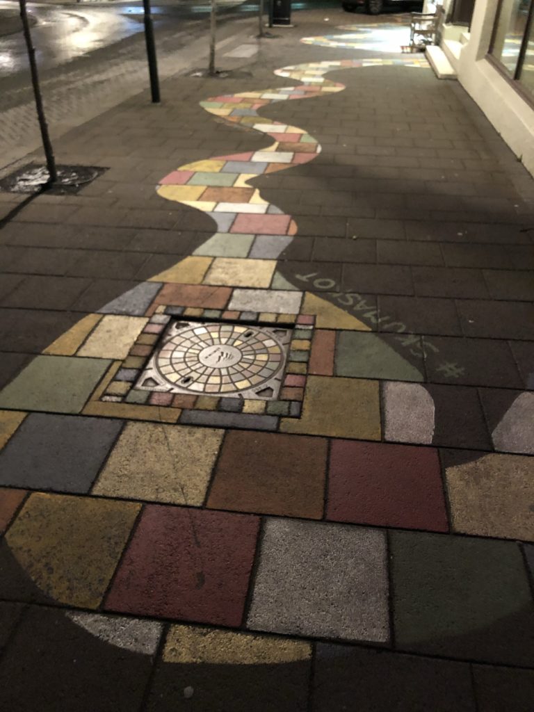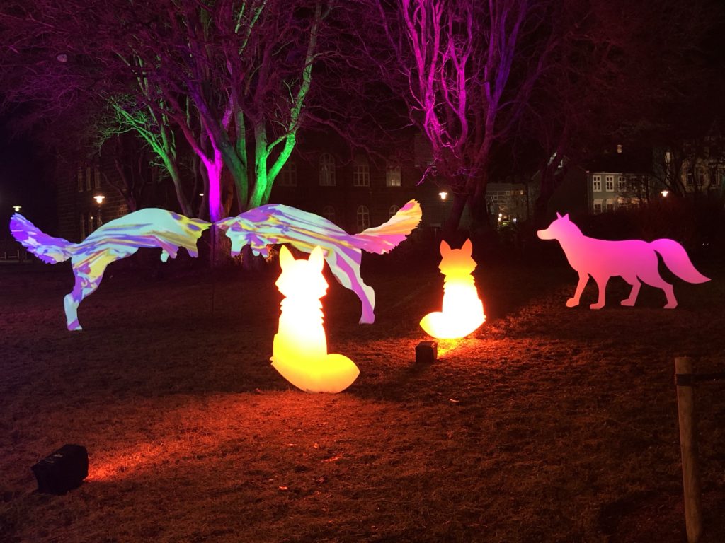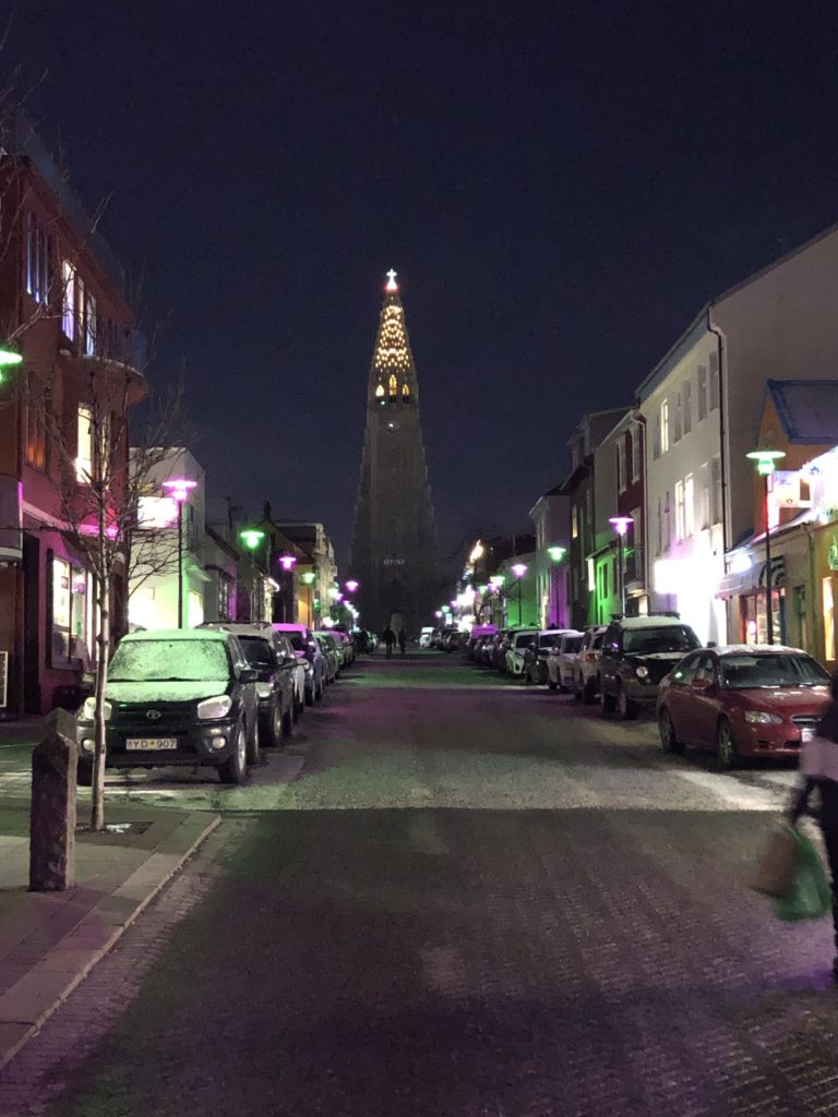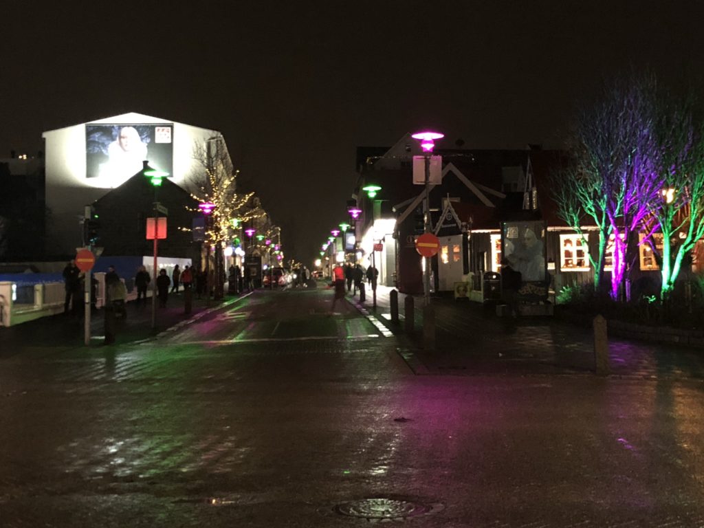 No, eipä siinä, meille koitunut ainoa harmi oli menetty aika perillä kohteessa. Istuttuamme siis lopulta kuusi tuntia koneessa ja sitten vielä vajaan tunnin verran bussissa Keflavikistä Reykjavikiin, oli ilta ehtinyt saapua ja pimeys laskeutua Islantiinkin. Onneksemme Reykjavikissa järjestettiin juuri tuona viikonloppuna joku valojen yön tyyppinen tapahtuma, jolloin koko kaupunki syttyi väriloistoon ja erilaisiin valokollaaseihin pimeän tultua.