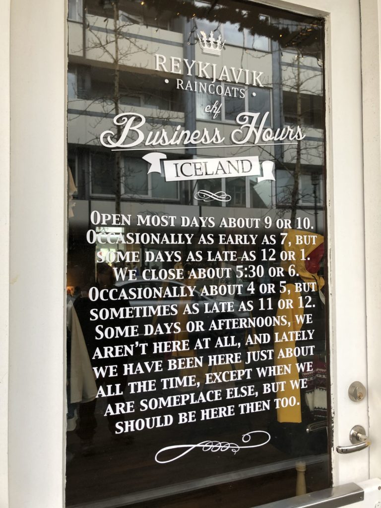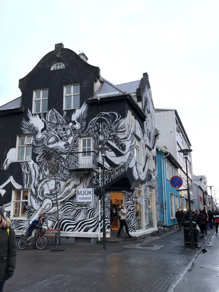 Reykjavik on ihana kaupunki. Iso ja pieni yhtä aikaa. Persoonallinen ja ystävällinen. Kaikille avoin, turvallinen. Sää siellä oli samanlainen kuin eteläisessä Suomessa on tänä talvena ollut: nollan molemmin puolin mennään, ja lumitilanne vaihtelee (nyt sitä ei ollut). Islannissa tuulee aina, mutta kesäiseen versioon nähden tuuli oli nyt voimakasta, pistävää ja kylmää. Meillä oli varattuna hyvät lämpöiset vaatteet oikeaoppisesti kerroksittain puettuna, ja silti maanantaina ulkona kulkiessamme sain ottaa kaikki mukana olevat mid-layer-vaatteet käyttöön. Sen verran hyistä meininki oli. Onneksi aina pääsi pujahtamaan sisään lämpöiseen kahvilaan tai houkuttelevaan putiikkiin.