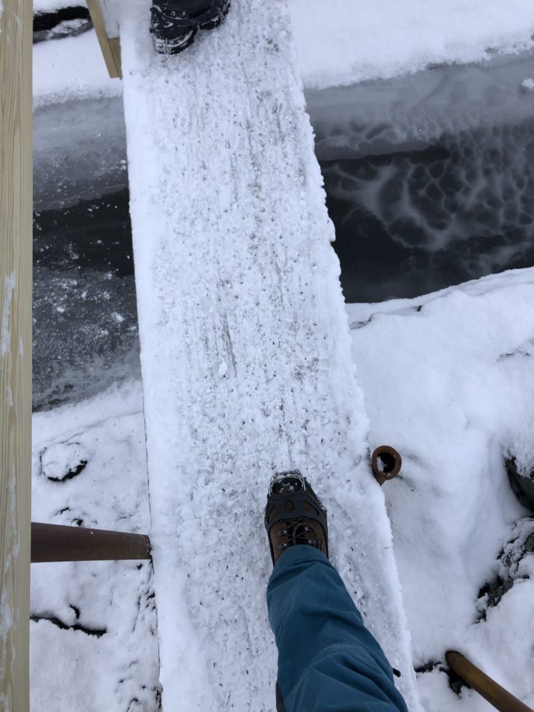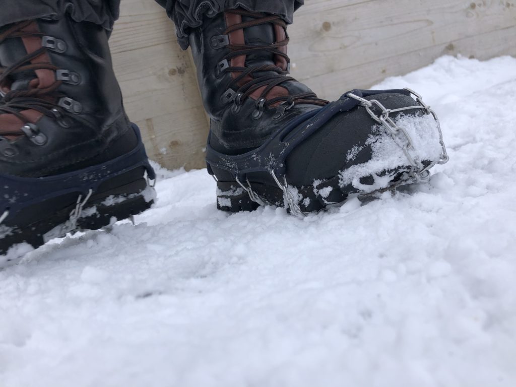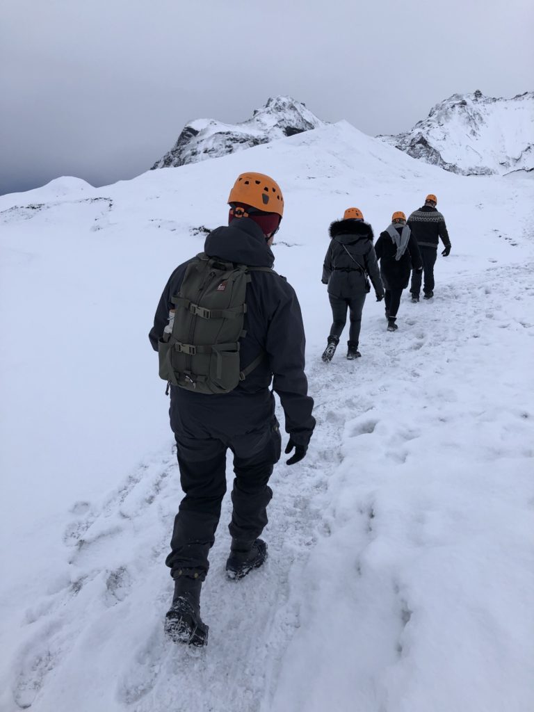 Perille päästyämme meille annettiin varusteiksi kenkiin asennettavat jääraudat sekä kypärät.