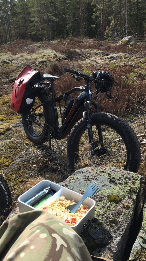 Valitettavasti reissusta on otettu tasan yksi kuva, niin en nyt sepusta liian pitkää matkakertomustakaan. Sanotaan nyt näin, että lähdettiin hakemaan yhtä tiettyä reittiä Moronvuoren ja Petäjäpirtin välillä, harhailtiin pariin otteeseen vähän väärille poluille, kunnes lopulta löydettiin suurin piirtein sinne, minne pitikin. Ja sieltä onnistuneesti kotiin, tietenkin parin mutkan kautta valitessamme tylsän asvalttitien sijasta maastokelpoisempia reittejä. Matkaan sisältyi muutaman hukkakierroksen lisäksi myös vesiesteiden ylitystä, asvalttiosuuksia, hiekkateitä, kivikkoisia polkuja, ojien ylityksiä, erittäin kuoppaisia reittejä sekä tosiaan, aiempaan mainintaan viitatakseni, osuus suolla ajelusta: “Tästähän sen reitin tosiaan pitäisi mennä, mutta hei, huomaatko, me ollaan nyt ihan keskellä suota. Siis oikeasti suolla. Kato, tuossa on karpaloita!” Pyörä suoriutui suosta hienosti: pientä vaihdetta silmään, sähköavusteet täysille ja niin paljon vauhtia kuin vain sai sutkutettua menemään – pyörä liiti kiitettävästi kosteanpuoleisessa suomaastossa.