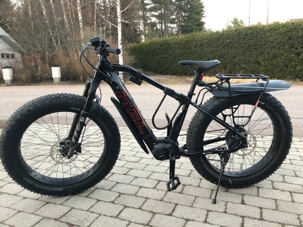 Minä olen seurannut sivusta Mikon pitemmän aikaa kasvanutta kiinnostusta sähköfätteihin, mutta olen priorisoinut koiran ja metsälenkit koiran kanssa pyöräilykiinnostuksen edelle. Koska nyt ei ole koiraa, en minä ole löytänyt yhtään syytä lähteä ulos. Koko alkuvuonna olen käynyt ulkoilemassa neljä kertaa, sekä lisäksi nyt parin viikon sisään fillaroimassa kolme kertaa eli yhteensä seitsemän ulkoilukertaa koko vuonna 2020. Kun Mikko toteutti suunnitelmansa sähköfatbikesta pari kuukautta sitten ja osti E/Fatin, onnistui minunkin kiinnostukseni heräämään. Kävin parilla testilenkillä Mikon pyörällä ja – kuinkas sattuikaan; Oma Pyöräni saapui eilen. Sähköavusteinen läskipyörä Helkama FE11 FS.