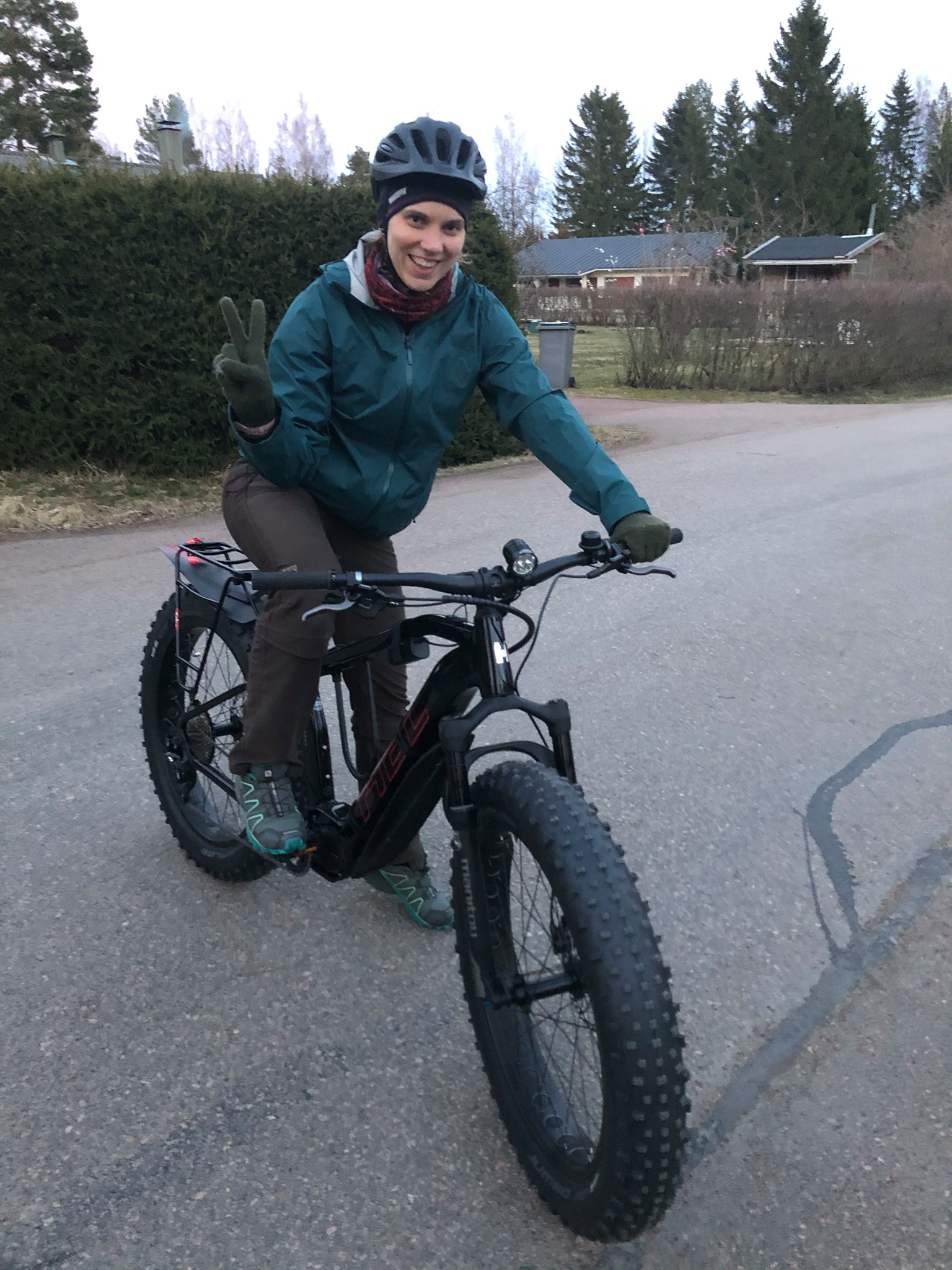 Minä olen seurannut sivusta Mikon pitemmän aikaa kasvanutta kiinnostusta sähköfätteihin, mutta olen priorisoinut koiran ja metsälenkit koiran kanssa pyöräilykiinnostuksen edelle. Koska nyt ei ole koiraa, en minä ole löytänyt yhtään syytä lähteä ulos. Koko alkuvuonna olen käynyt ulkoilemassa neljä kertaa, sekä lisäksi nyt parin viikon sisään fillaroimassa kolme kertaa eli yhteensä seitsemän ulkoilukertaa koko vuonna 2020. Kun Mikko toteutti suunnitelmansa sähköfatbikesta pari kuukautta sitten ja osti E/Fatin, onnistui minunkin kiinnostukseni heräämään. Kävin parilla testilenkillä Mikon pyörällä ja – kuinkas sattuikaan; Oma Pyöräni saapui eilen. Sähköavusteinen läskipyörä Helkama FE11 FS.