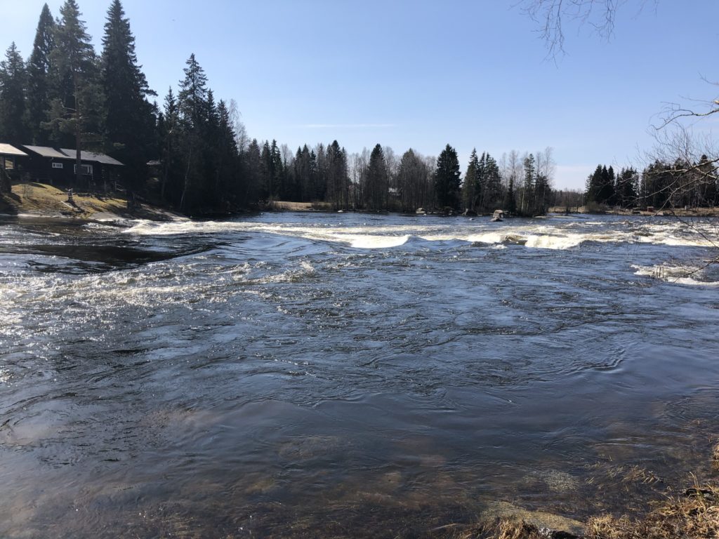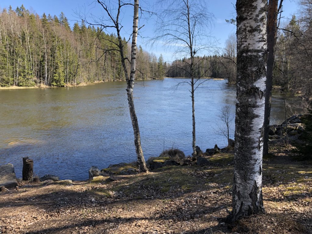 Ruotsinpyhtäälle saavuttuamme mietimme, kurvaisimmeko pitämään taukomme Strömforsin ruukilla. Totesimme kuitenkin, että jätetään se seuraavaan kertaan ja otetaan vesitauko Kymijoen rannalla sijaitsevalla taukolevennyksellä. Oikein kaunista jokimaisemaa ihasteltavaksi.