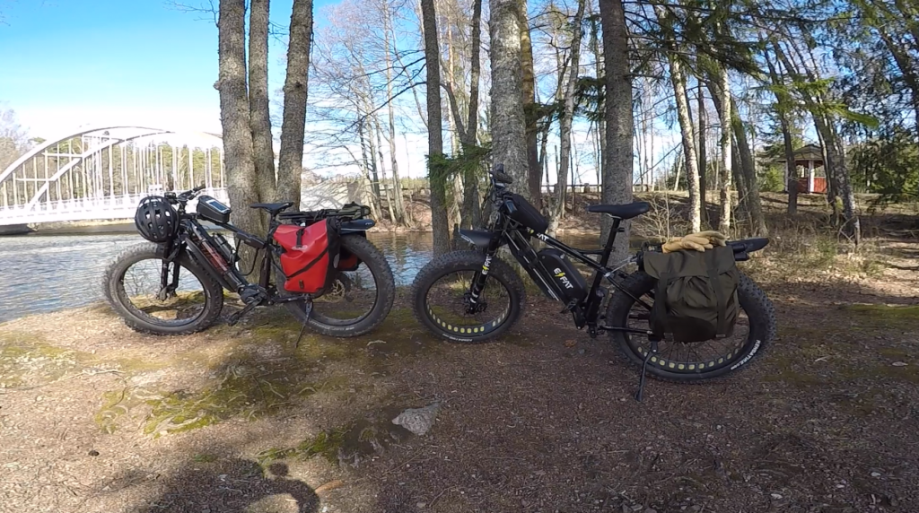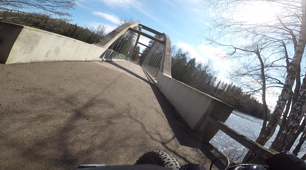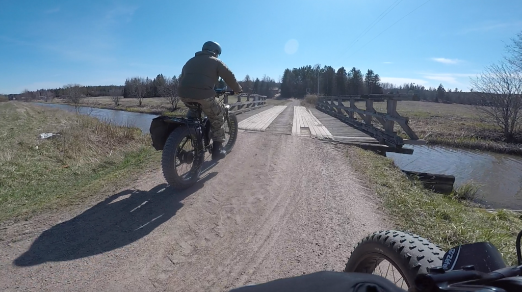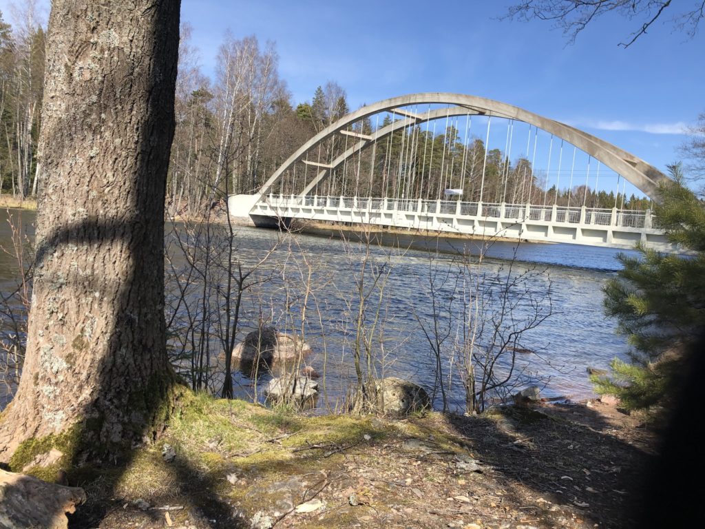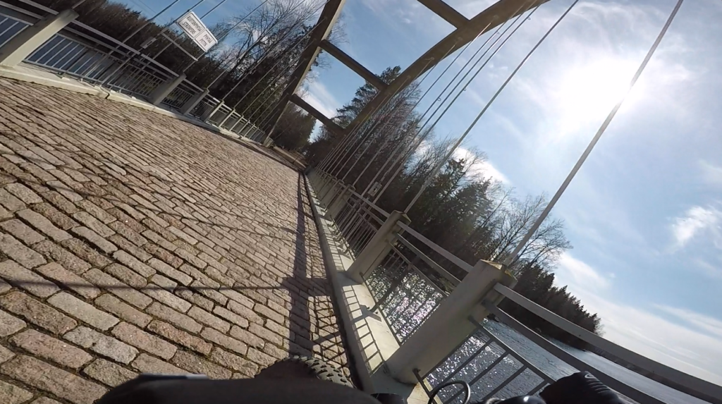 Mutta koska levähdyspaikalla oli pari muutakin, päätimme me jatkaa vielä pari kilometriä eteenpäin ja ottaa toisen, hieman pitemmän taukomme Savukosken sillalla. Sillalla on merkittynä kyltein Ruotsinpyhtään ja Pyhtään rajamerkit, eli nyt oltiin saavuttu taas kotikylän puolelle. Termarissa oli vielä jäljellä santsikuppien verran täydennystä, ja kun kilometrejä oli tässä kohtaa takana jo 51, oli hyvä syy pitää kahvin- ja välipalapatukan mittainen lepotuokio kauniissa Savukosken sillan maisemissa.