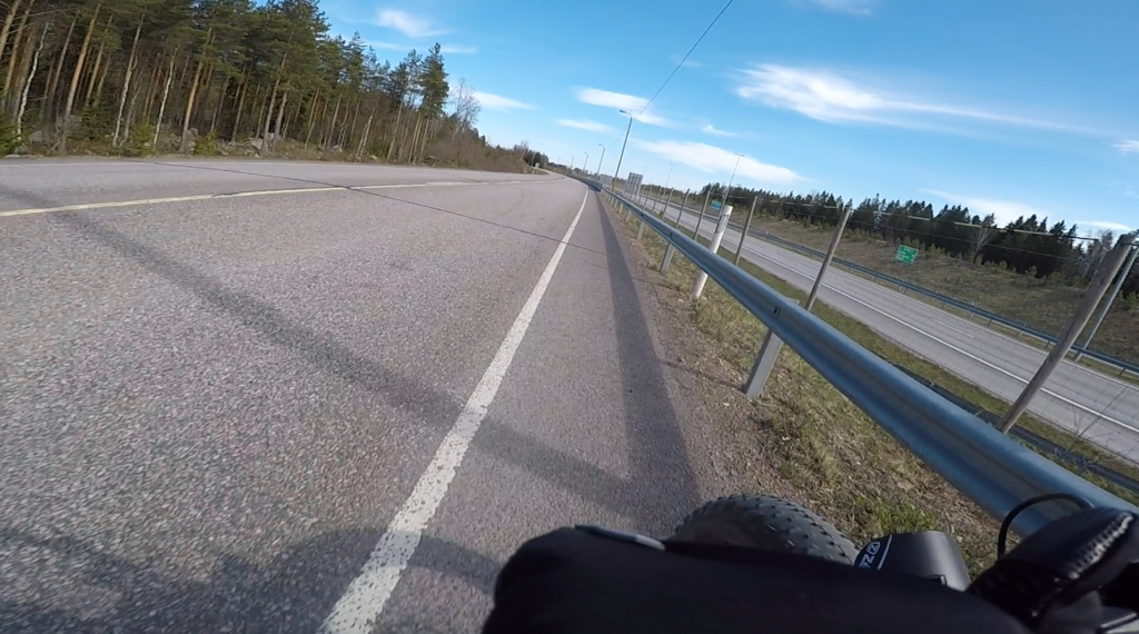 Tiet veivät meidät jopa Kouvolan puolelle (alue oli vanhaa Elimäkeä, oletan) ja siitä Ruotsinpyhtäälle. Maisema oli hyvin idyllistä, keväistä suomalaista peltoa, pieniä “kyläkeskittymiä” ja metsää. Niin kaunista.