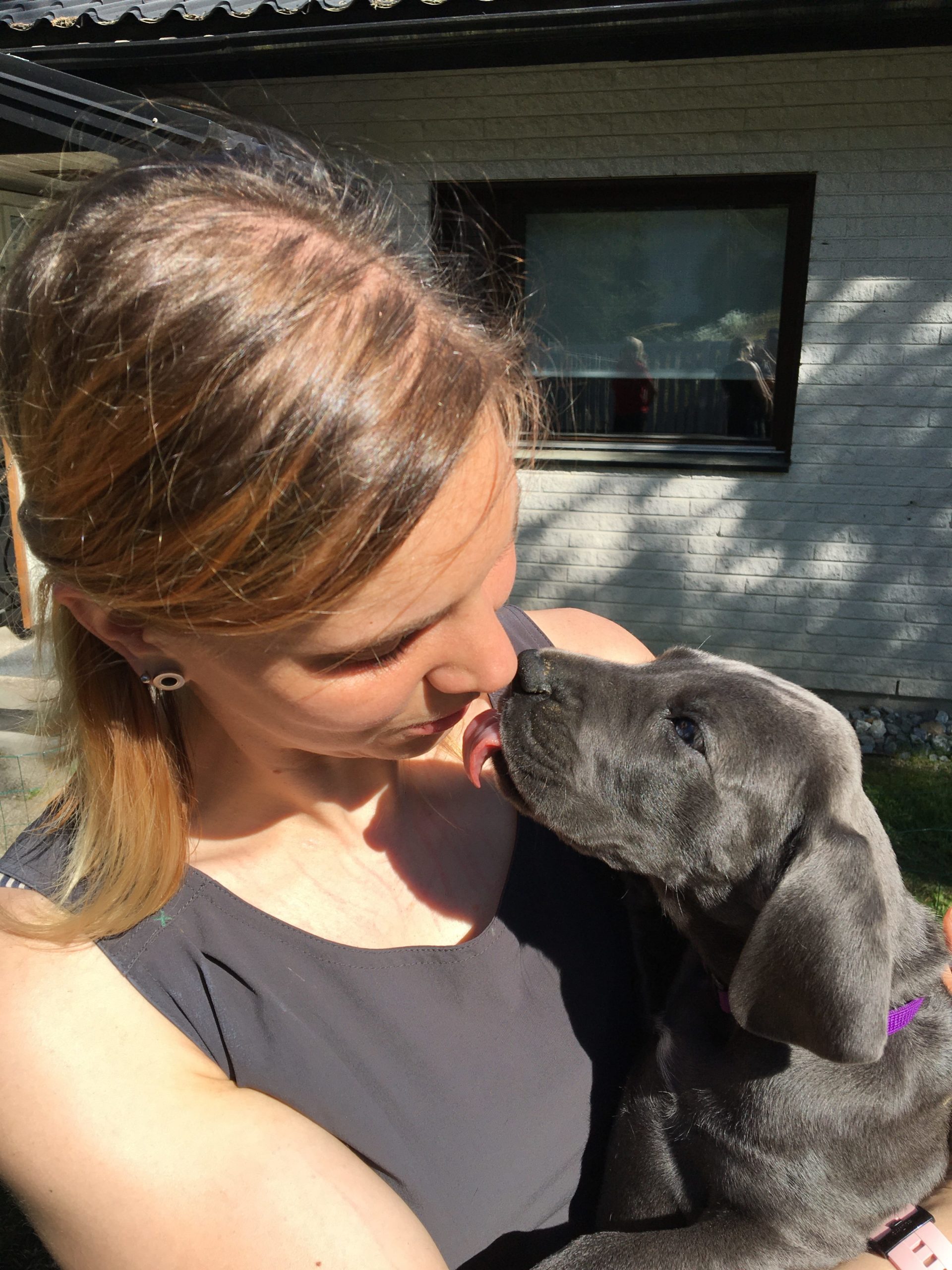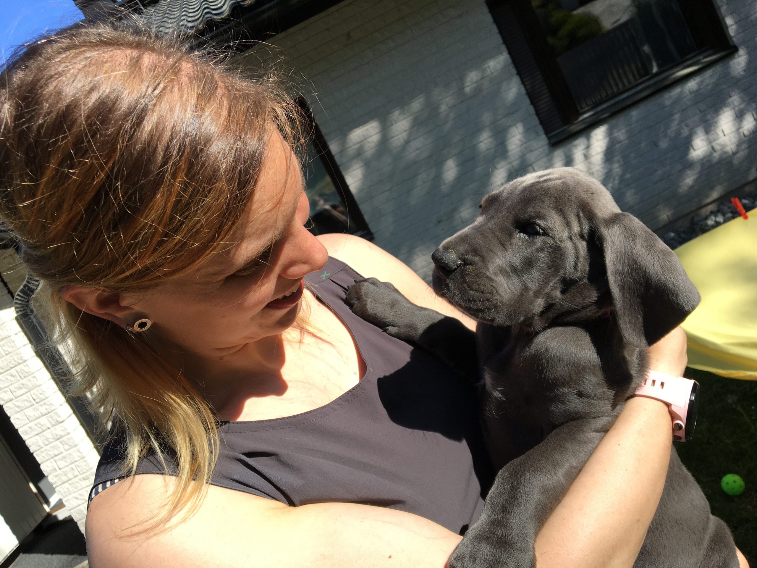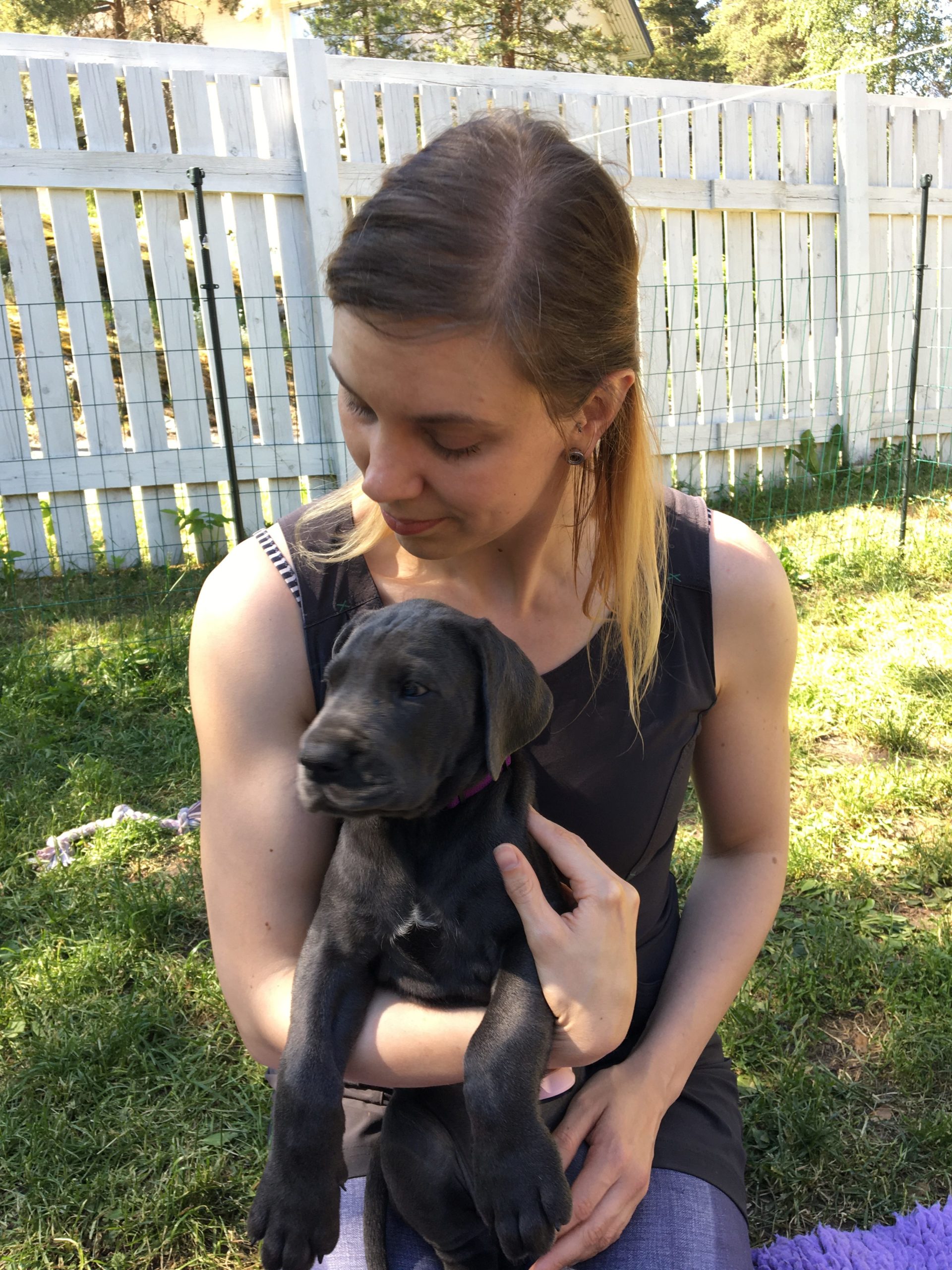 Ja ihan kohta, ihan kohta blogini saa taas olla nimensä mukaisesti A Great Dane site, ja pian pääsen kirjoittamaan doggipennun kasvusta ja elämästä. Ja kaikista tuhotuista leluista, syödyistä Kielletyistä Tavaroista — ei kun, eihän niitä tule, – ja Metsälenkeistä ja Suurista Opituista Asioista Elämässä ja ehkä uintireissuista ja viikonlopuista kesämökillä ja toivottavasti näyttelymatkoista ja…