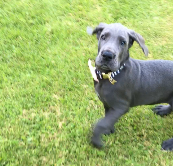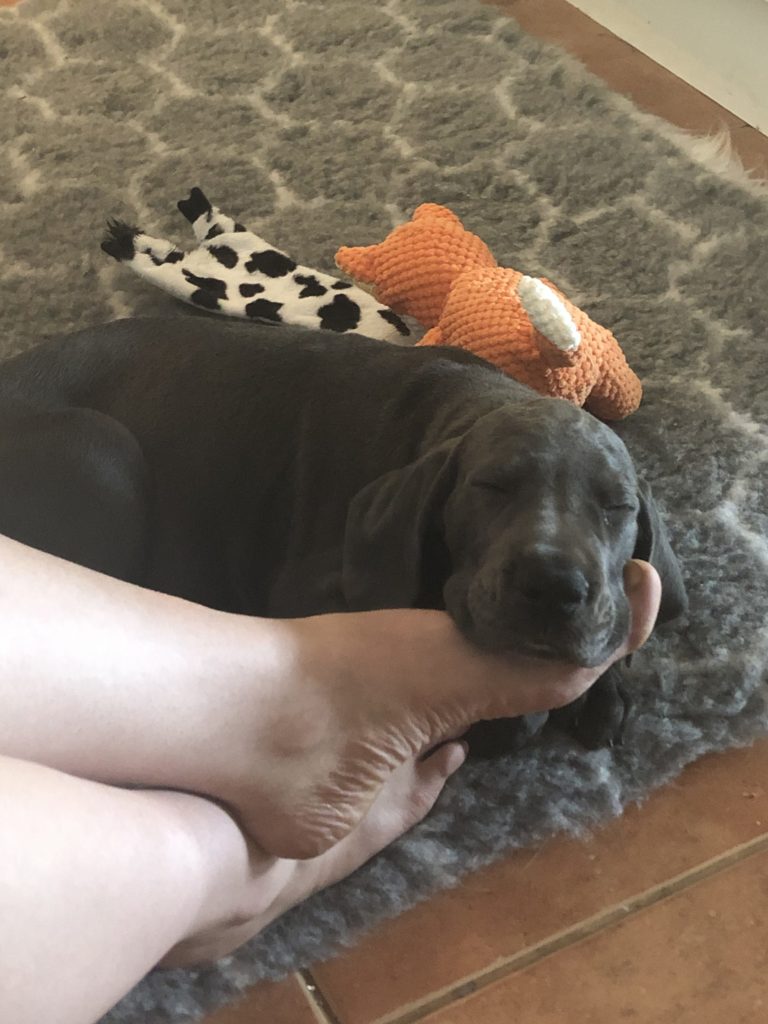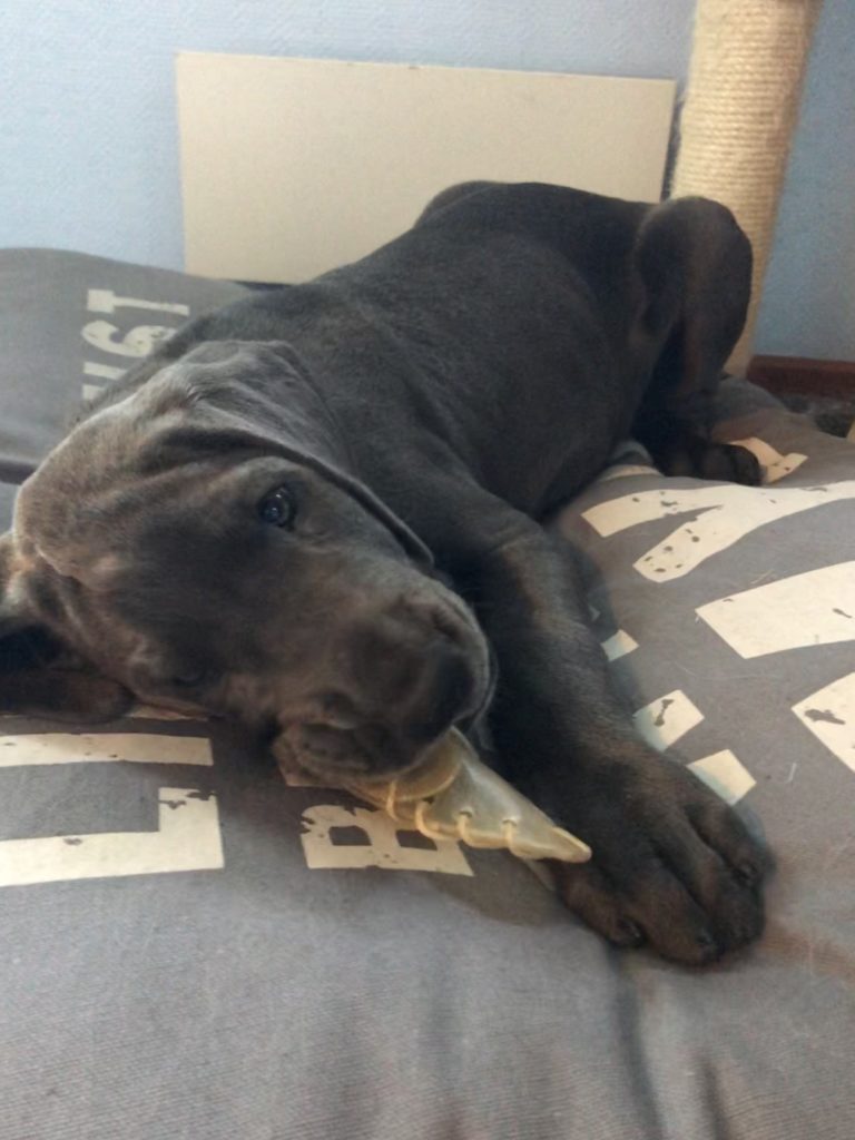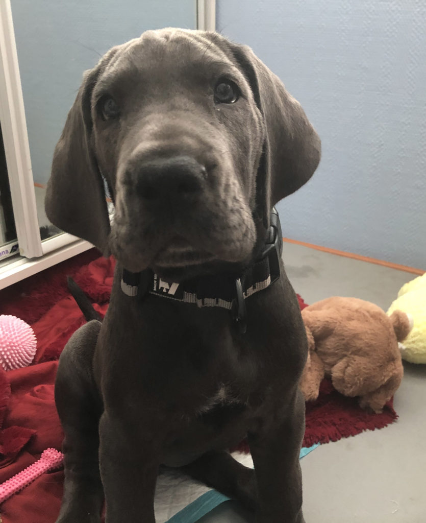 Kutsumanimelle on tarina. Olimme miettineet pennulle nimeä, ja vaihtoehtoja oli vilahdellut jo noin 589 kappaletta. Jostain syystä ne hyvätkään vaihtoehdot eivät tuntuneet sopivilta. Eräänä päivänä, aivan yhtäkkiä palasi mieleeni muisto jostain 2000-luvun taitteesta: Silloin nuorena tyttönä, kun olin jo hurahtanut tanskandoggeihin, tein päätöksen, että aikuisena minulla on viiden sinisen tanskandoggin lauma. Olin päättänyt jo niiden kutsumanimetkin, joista (varmaksi) muistan tänä päivänä kolme. Ne olivat Veeti, Leevi ja Venla. Neljäs oli mahdollisesti Vilma – viidettä en enää muista, mutta hyvin samaa linjaa noudatteleva.