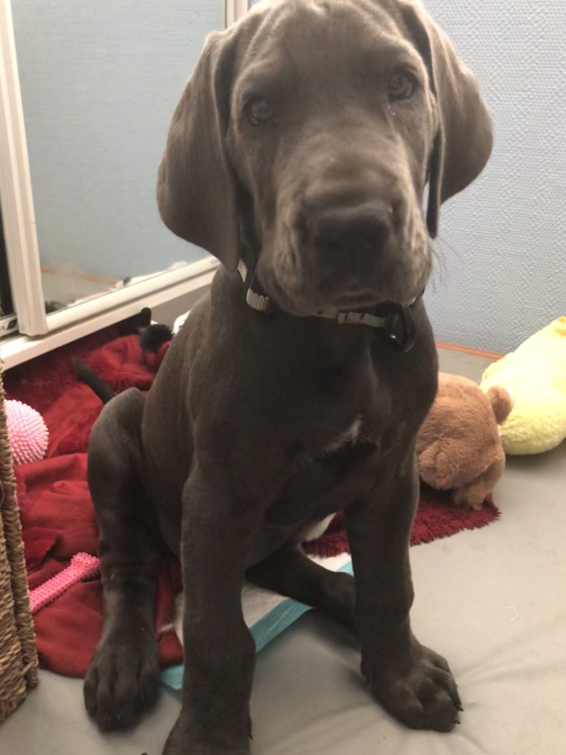Kutsumanimelle on tarina. Olimme miettineet pennulle nimeä, ja vaihtoehtoja oli vilahdellut jo noin 589 kappaletta. Jostain syystä ne hyvätkään vaihtoehdot eivät tuntuneet sopivilta. Eräänä päivänä, aivan yhtäkkiä palasi mieleeni muisto jostain 2000-luvun taitteesta: Silloin nuorena tyttönä, kun olin jo hurahtanut tanskandoggeihin, tein päätöksen, että aikuisena minulla on viiden sinisen tanskandoggin lauma. Olin päättänyt jo niiden kutsumanimetkin, joista (varmaksi) muistan tänä päivänä kolme. Ne olivat Veeti, Leevi ja Venla. Neljäs oli mahdollisesti Vilma – viidettä en enää muista, mutta hyvin samaa linjaa noudatteleva.