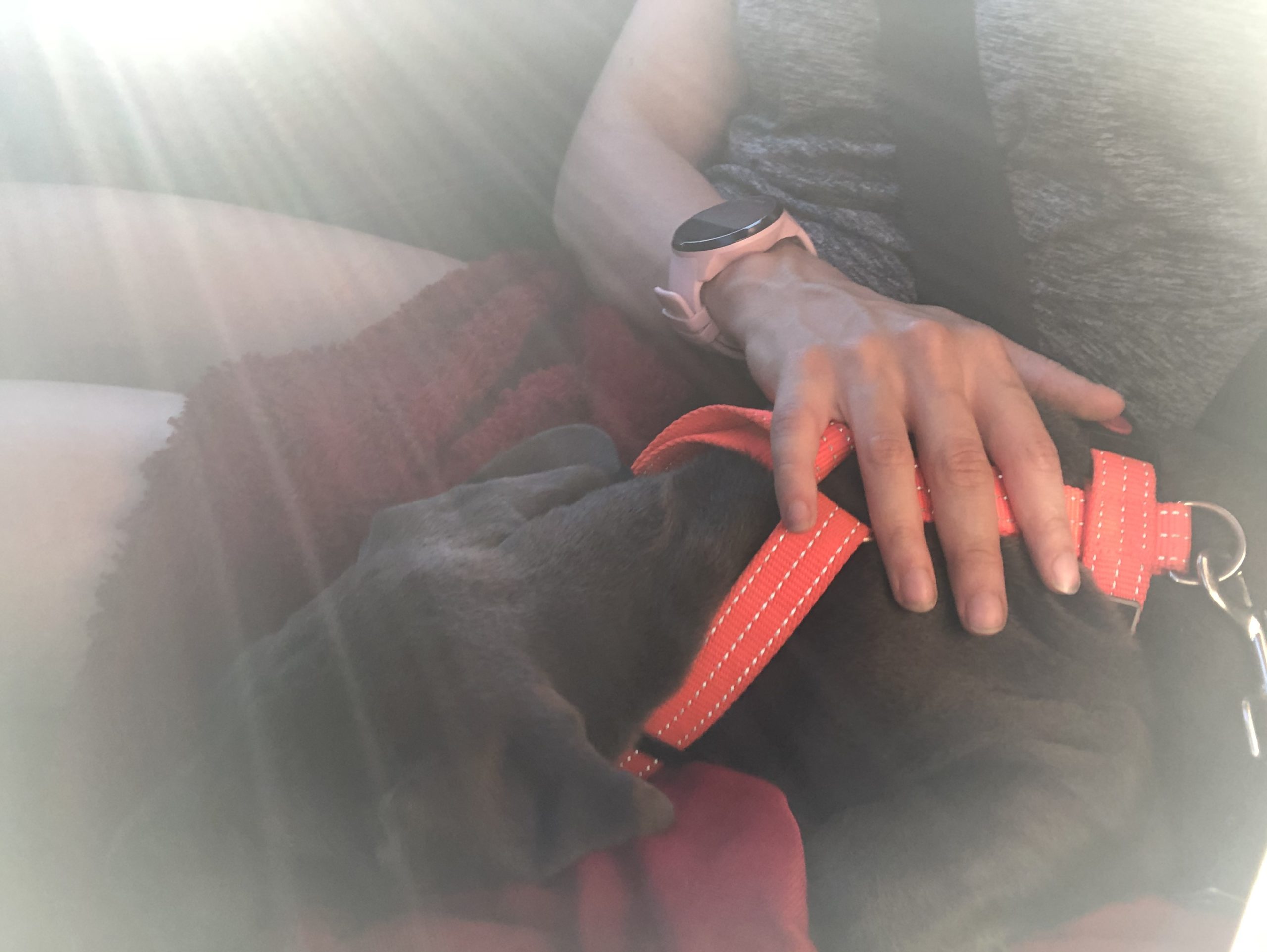 Haimme Venlan tiistaina. Kolmen tunnin automatka meni hyvin koiran istuessa ja maatessa sylissäni. Se kyllä läähätti myös aika paljon, joko jännityksestä tai mahdollisesti pienestä matkapahoinvoinnista johtuen.
