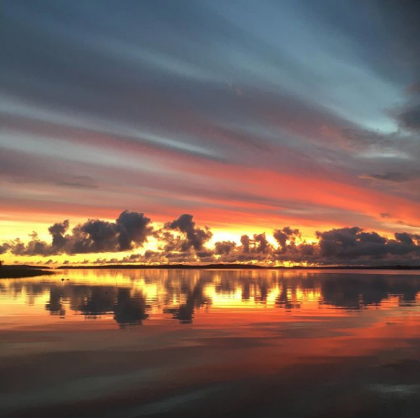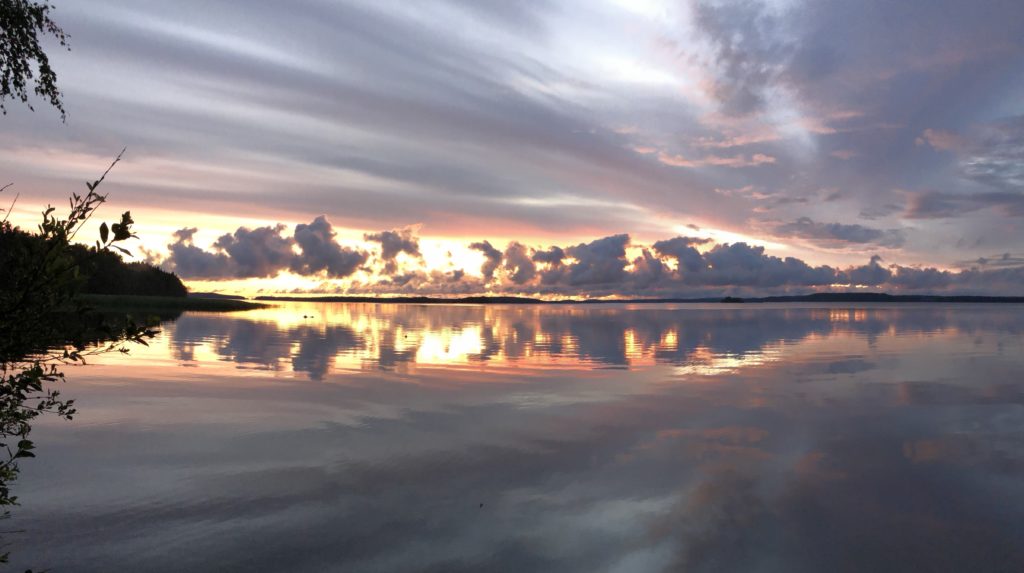 Ja jotakin hyvää on myös siitä, että pentu herätti klo 03.13 pissakäynnille. Päästiin ihailemaan hienoa auringonnousua.