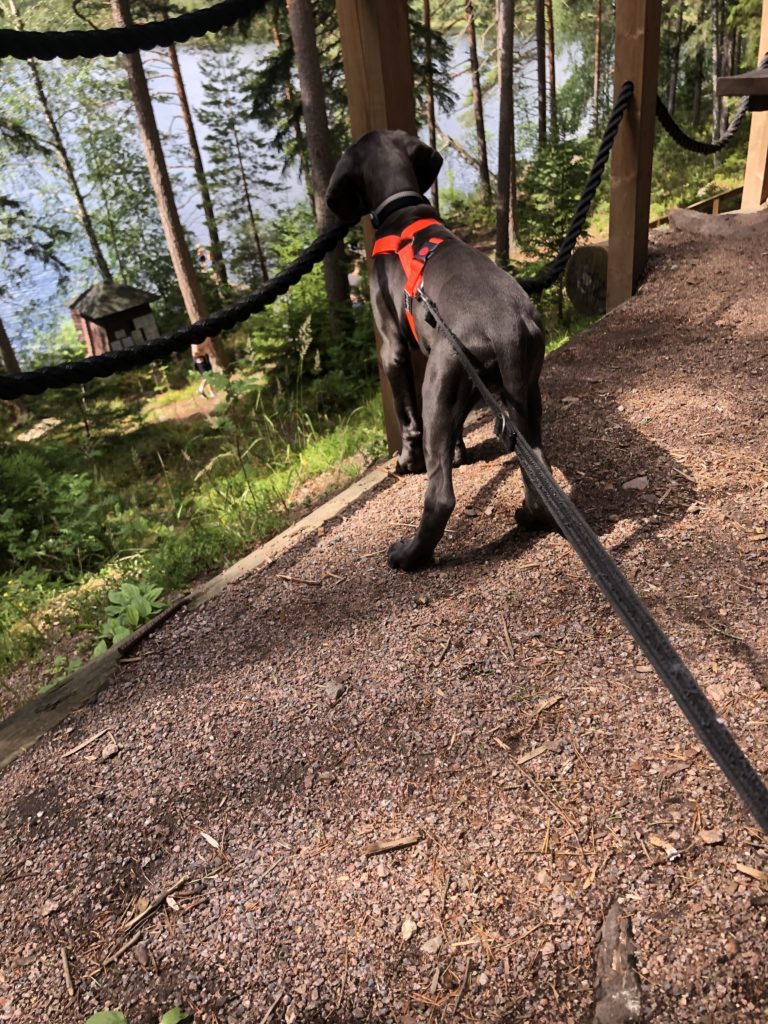 Lähtiessä laavulta kohtasimme 4,5-kuisen borderterrieritytön, ja pennut leikkivät hetken aikaa hihnanmitan matkalla. Venla suhtautui taas avoimesti ja iloisesti (mutta rauhallisesti) vauhdikkaaseen borderipentuun, jonka leikki oli hyvinkin terrierimäisen vauhdikkaasti. Ihana kohtaaminen – josta ei valitettavasti tullut kuvia…