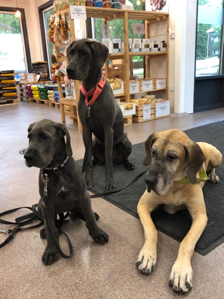 Pyörähdimme muuten päivällä Venlan uudessa työpaikassa, Kennel-Rehulla. Pitihän sitä saada otettua kimppakuva kaveruksista. <3