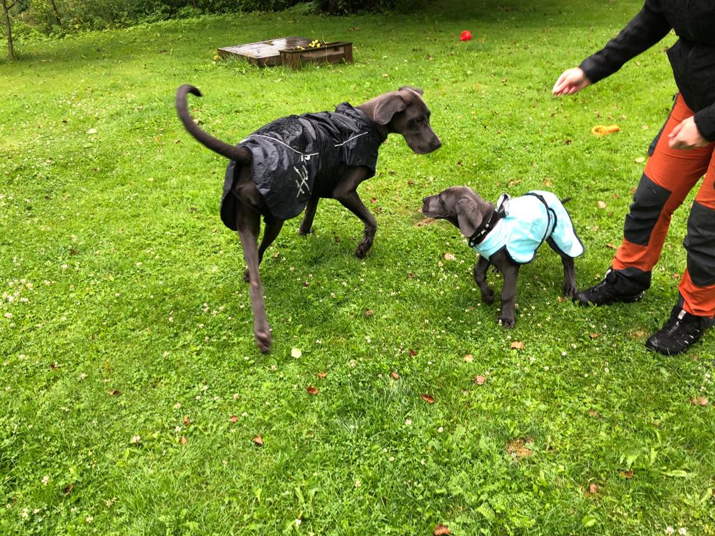 Lauantai starttasi sateisena, mutta varsin mukavissa merkeissä, kun Penni ja Hekla ilmestyivät meille! Kavereiden ilmestyminen pihaan oli niin kiva juttu, että edes ihan-kurja-vaate-revin-sen-pois -sadetakki sai olla rauhassa päällä. 🙂 Onneksi iltapäivästä keli muuttui paremmaksi, ja sadevaatteet saatiin laittaa kuivumaan.