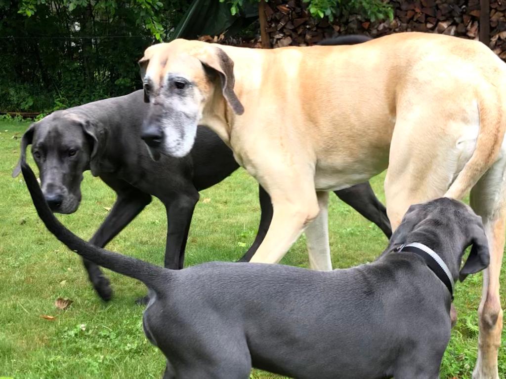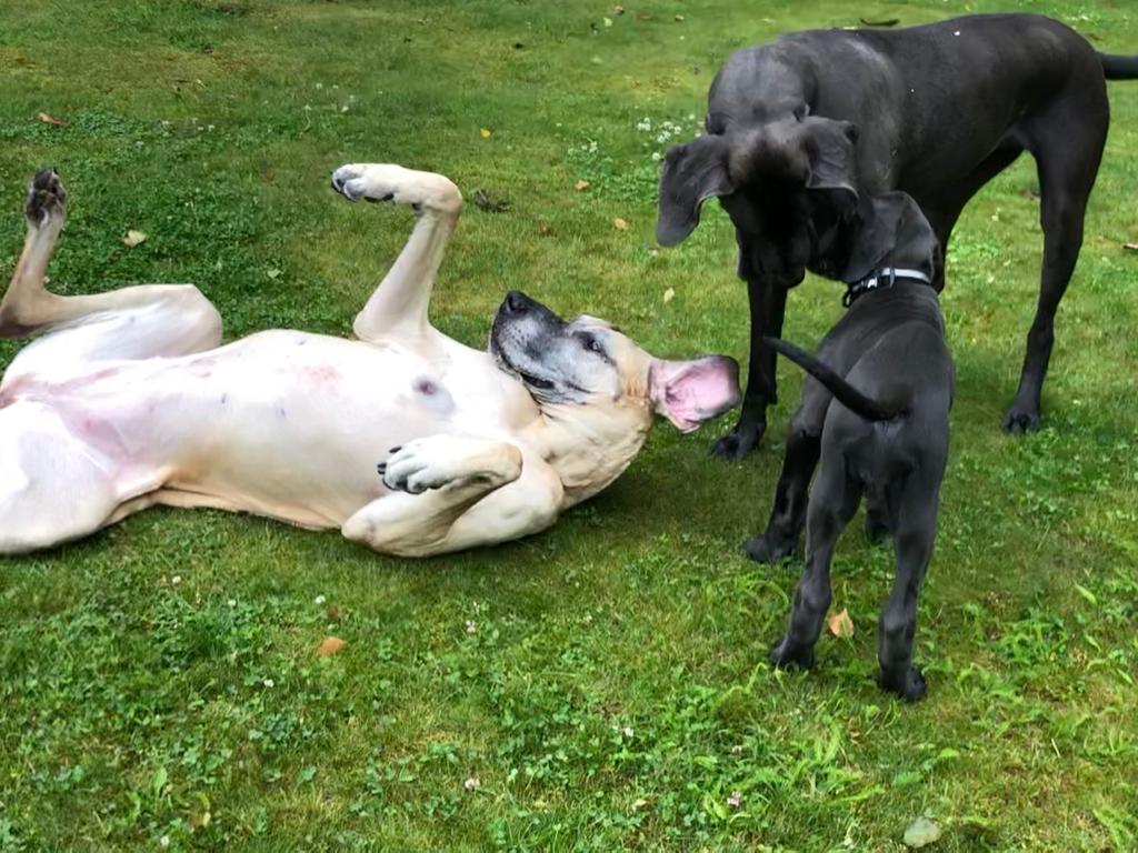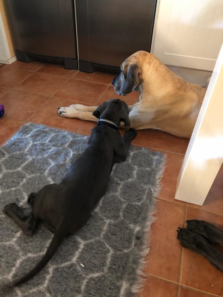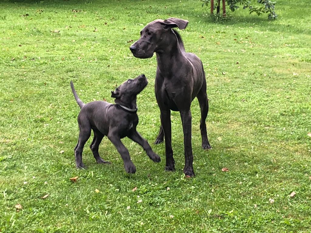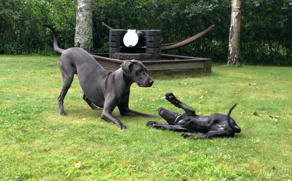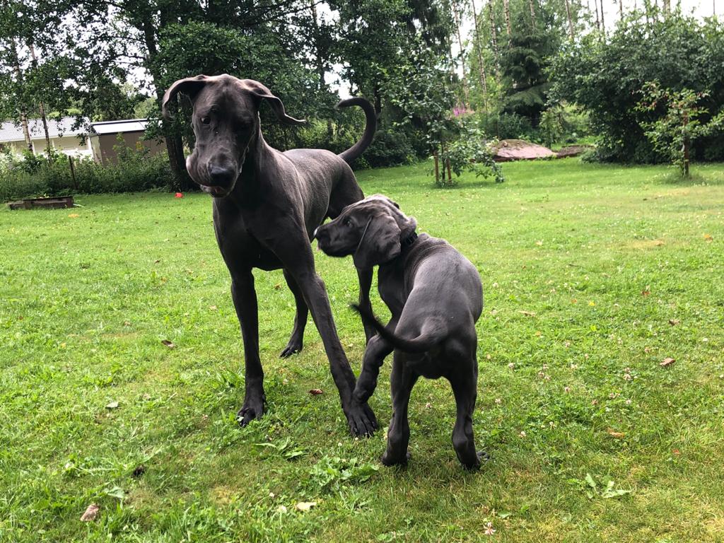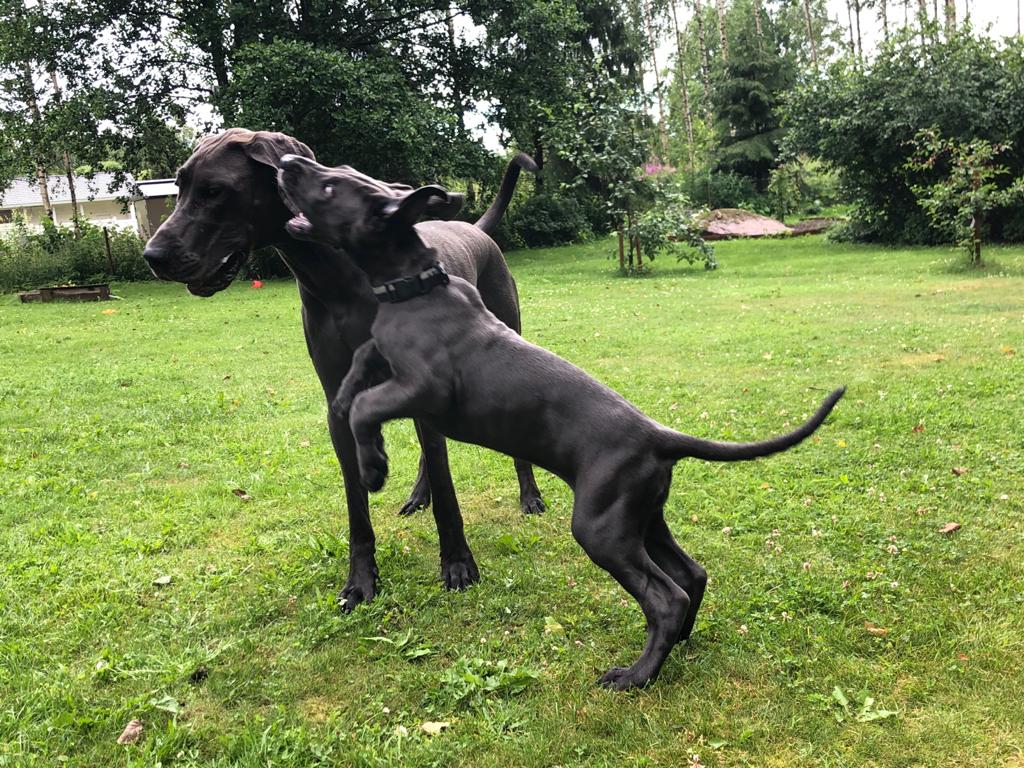 Leikit ja puuhastelut sujuivat vallan mallikkaasti. Hekla jaksoi kaulanahoissa roikkuvaa pentua todella pitkämielisesti, ja silti samalla osasi leikkiä varovaisesti kakaran kanssa. Penni huokui auktoriteettia ja rauhallisuutta, joten sen ainoan kerran kun Venla intoutui liiaksi Pennin iholle riekkumaan, palaute oli välitön ja riitti kertomaan pennulle että henkilökohtainen raja on ylitetty. Venla uskoi välittömästi (toki viestiä vahvisti pienesti korvalehteen kolahtaneet Pennin hampaat), ja lähestyi jatkossa Penniä kohteliaasti ja varovaisesti.