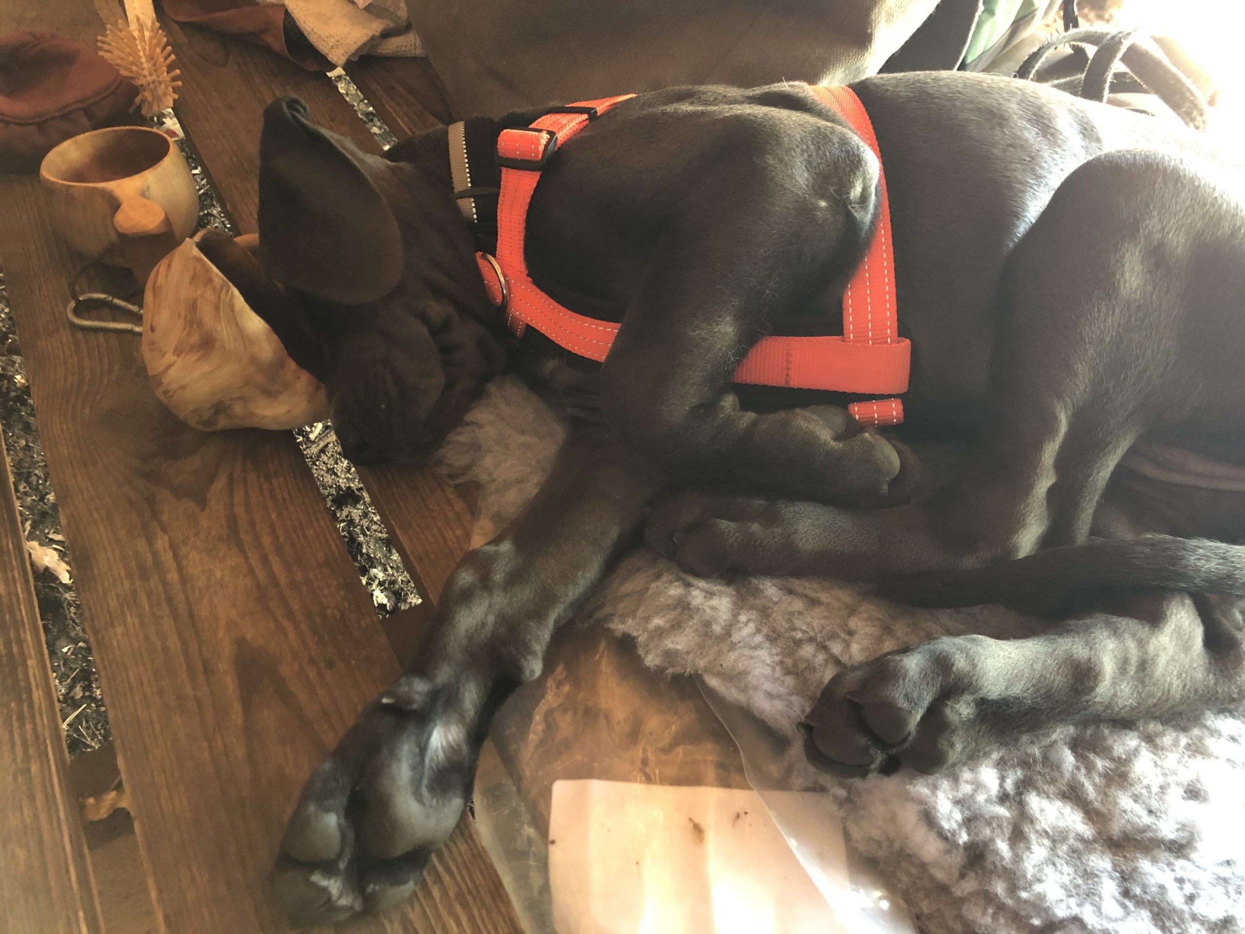 Leikit ja puuhastelut sujuivat vallan mallikkaasti. Hekla jaksoi kaulanahoissa roikkuvaa pentua todella pitkämielisesti, ja silti samalla osasi leikkiä varovaisesti kakaran kanssa. Penni huokui auktoriteettia ja rauhallisuutta, joten sen ainoan kerran kun Venla intoutui liiaksi Pennin iholle riekkumaan, palaute oli välitön ja riitti kertomaan pennulle että henkilökohtainen raja on ylitetty. Venla uskoi välittömästi (toki viestiä vahvisti pienesti korvalehteen kolahtaneet Pennin hampaat), ja lähestyi jatkossa Penniä kohteliaasti ja varovaisesti.