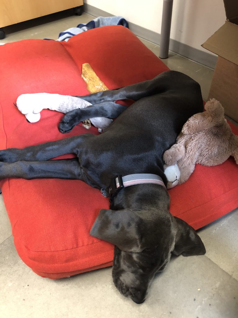 Männäviikkoon on ehtinyt taas mahtua kaikenlaista aktiviteettia. Me ollaan lähdetty tutustumaan työelämään – Venla on paitsi hurmannut kaikki työpaikalla, myös ollut siellä todella reippaasti erilaisten äänien, hajujen ja jopa hetkittäisen hälynkin keskellä. Toiset koirat kuulemma saattavat jännittää paikkaa, juuri edellä mainituista syistä. Toiset ei sitten niinkään; Venla-neiti on nukkunut sellaisia kuuden tunnin pituisia päikkäreitä työpöytäni alla vallan tyytyväisenä. 😀