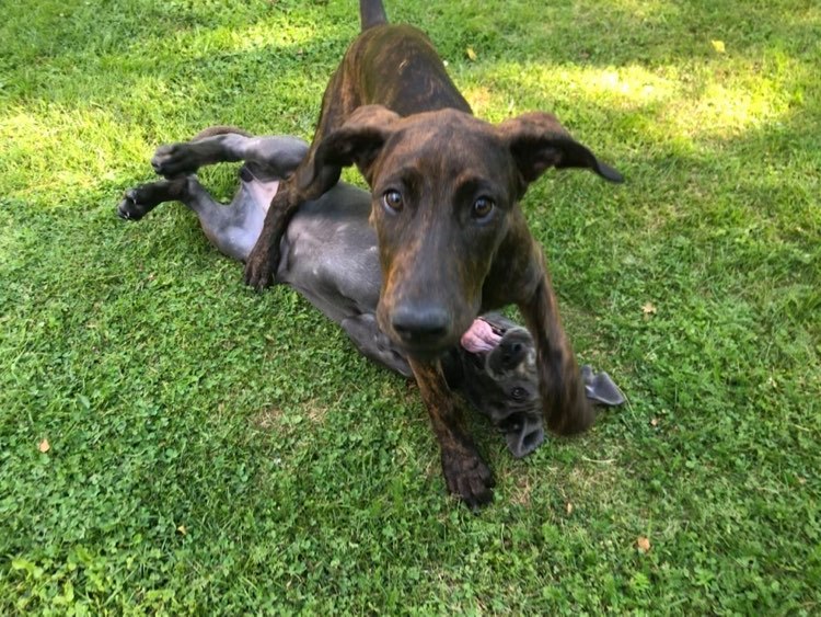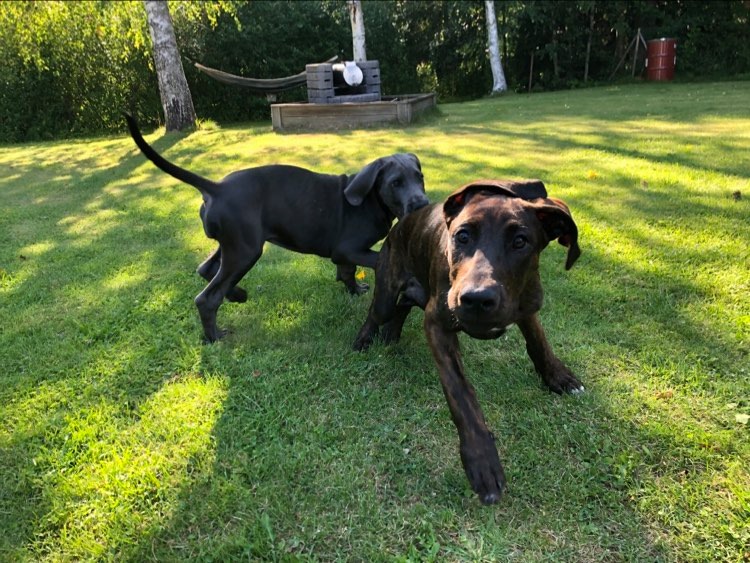 Venlan mielestä kuitenkin varmasti hauskinta oli tämänpäiväinen uusi leikkikaveri. Tutuillamme on kolme viikkoa vanhempi suloinen pentu, dobermann-kanariandoggimix Luna. Luna ja Venla olivat juuri nyt aivan samankokoisia, niiden painit ja leikit menivät aivan täydellisesti yksiin. Pihapainia oli aivan ihanaa katsella; uskon ja toivon, että tullaan tapaamaan tätä neitokaista vielä uudestaankin! <3