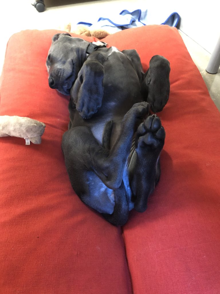 Hampsimisesta mieleeni, että yksikään aiemmista koiristani ei ole ollut näin kova puremaan eikä hyppimään. Venla hampsii käsiäni, hihansuita ja puntteja tai aamutakin naruja – ja talutushihnaa! Ah! Talutushihnan syöminen on ehkä parasta! – sadoista kielloista ja huomion siirroista huolimatta. Kiihtyessään se hyppii, ja kiipeilee ja puree hiuksia ja nenää ja korvia (yhtä lailla leikkiäkseen kuin osoittaakseen kiintymystään vähän rajulla tavalla). Naskalit luonnollisesti sattuvat aika pirusti ja on myös täysin mahdollista, että se onnistuu tikkaamaan reikiä vaatteisiini, joten ei varmaan ole mitenkään yllättävää, että koiraa joudutaan torumaan nyt aika napakasti näiden tapojen poiskitkemiseksi.