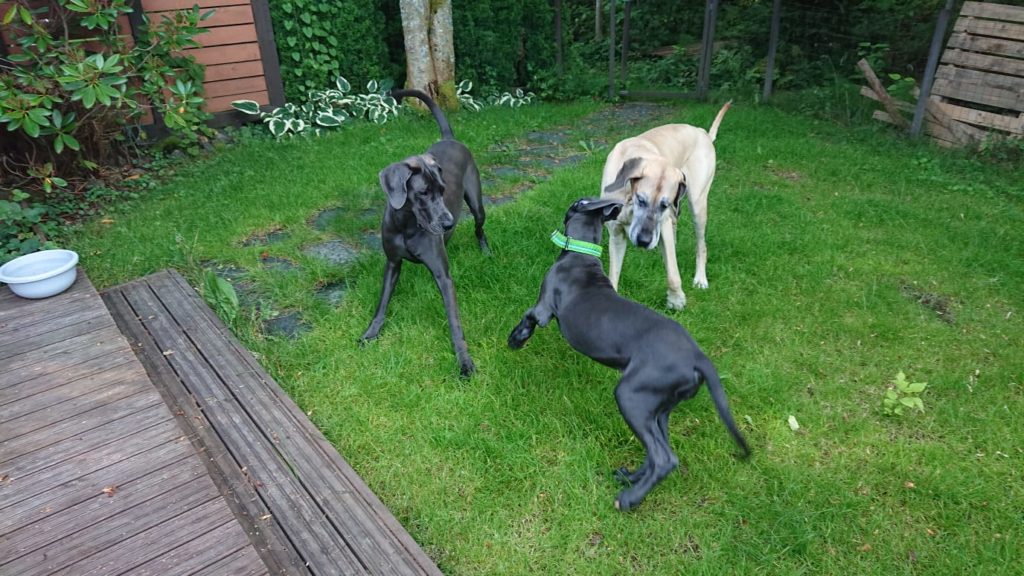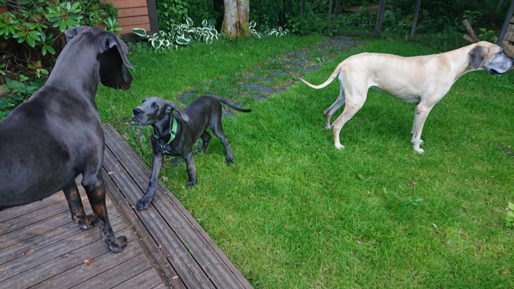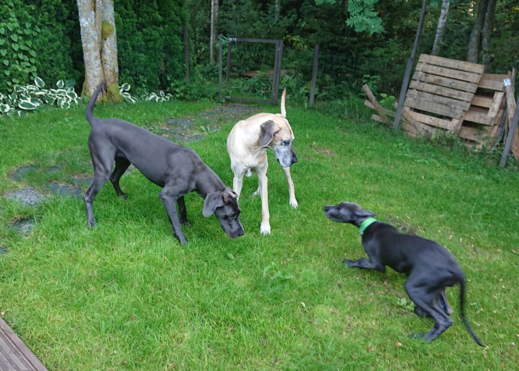 Lisäksi Venla on saanut vierailla Niina-tädin ja Penni- ja Hekla-tätien hellässä hoivassa viikonlopun ajan. Viikonloppu on sujunut mallikkaasti ja Venla on löytänyt oman paikkansa porukan joukossa. Onpa pentu otettu kumiveneeseen ja laitettu uimaankin, siitä ei valitettavasti ole nyt kuvia 🙂 Kiitos Niinalle kakaran hoitamisesta! <3
