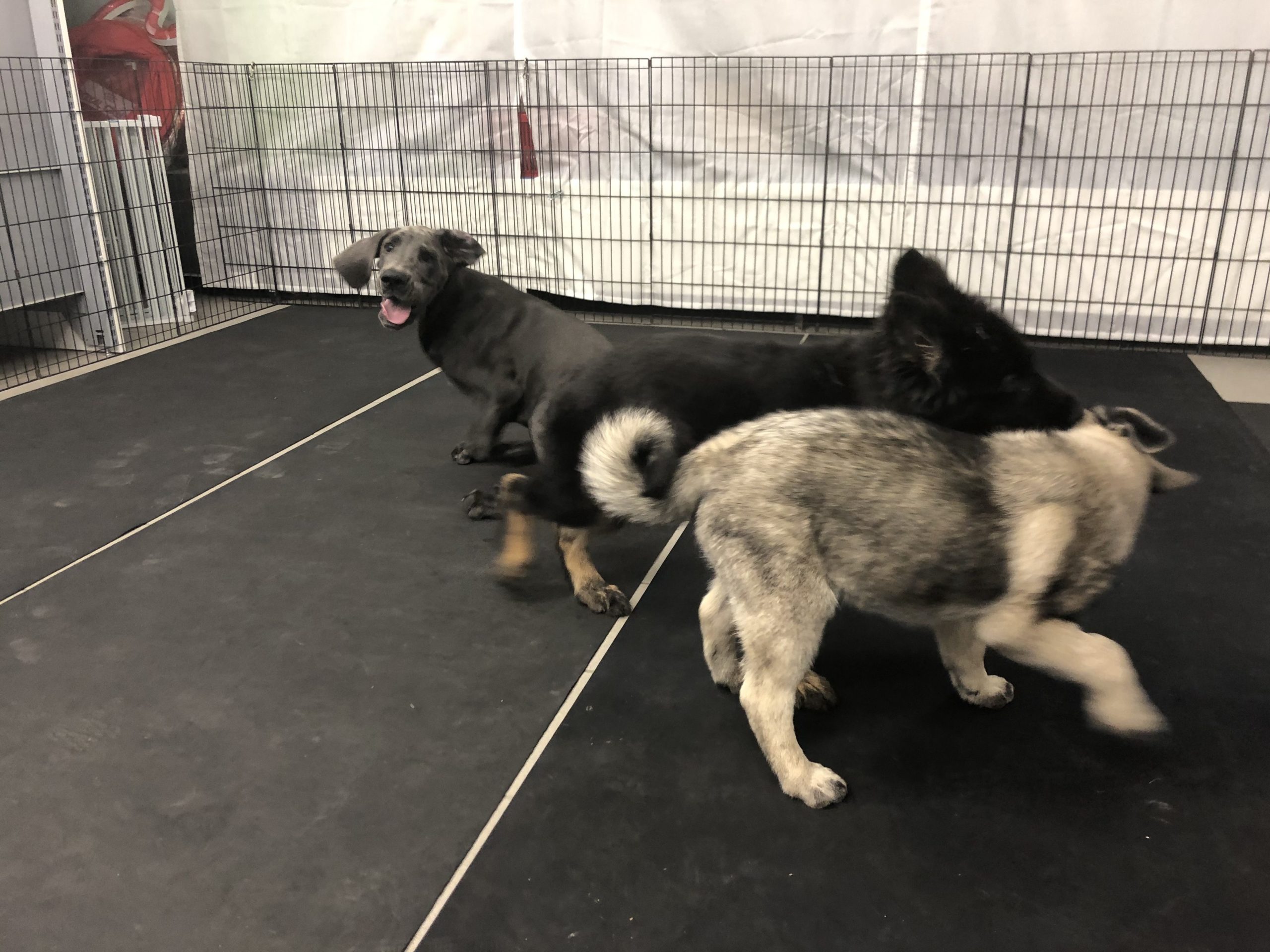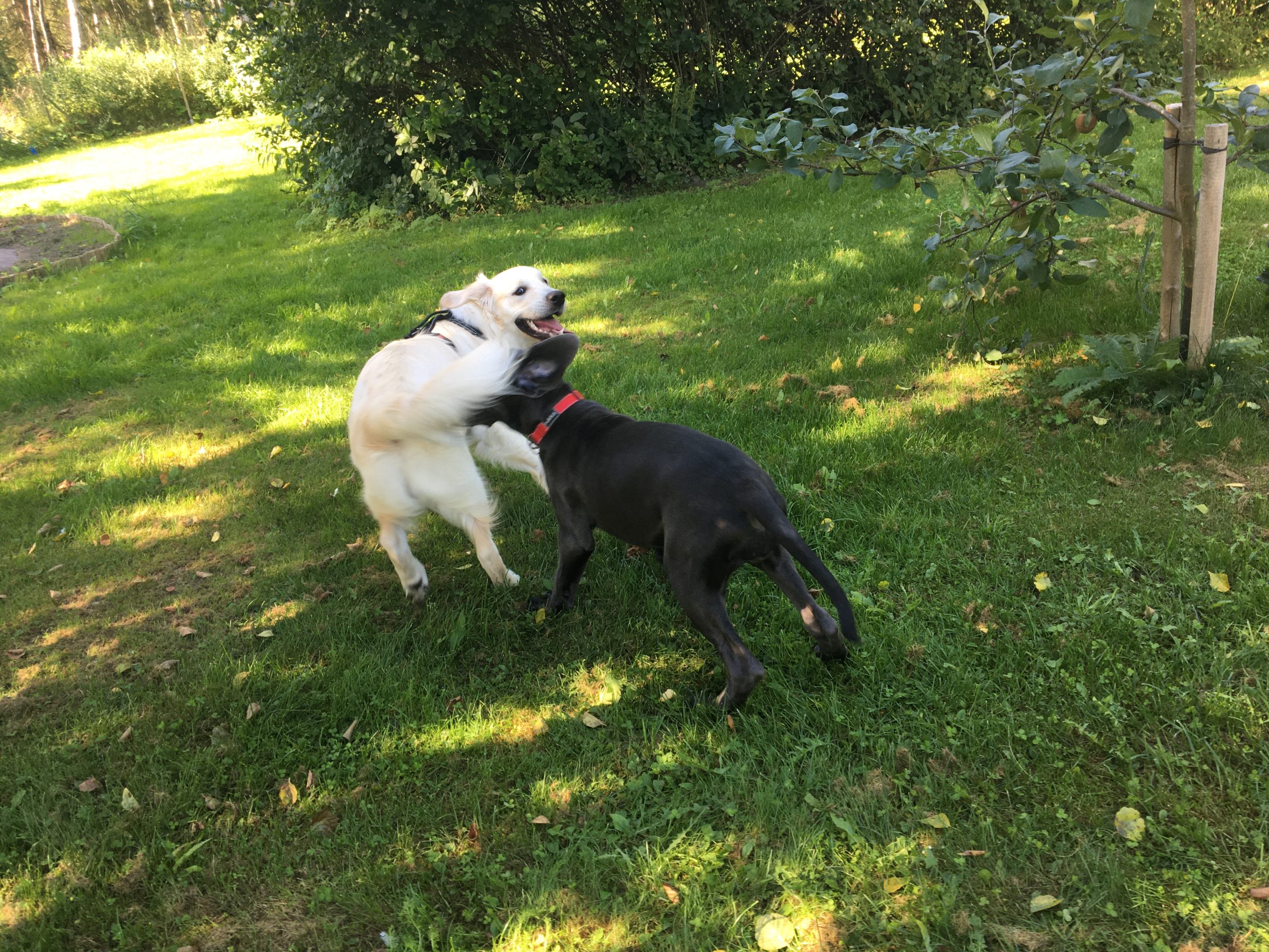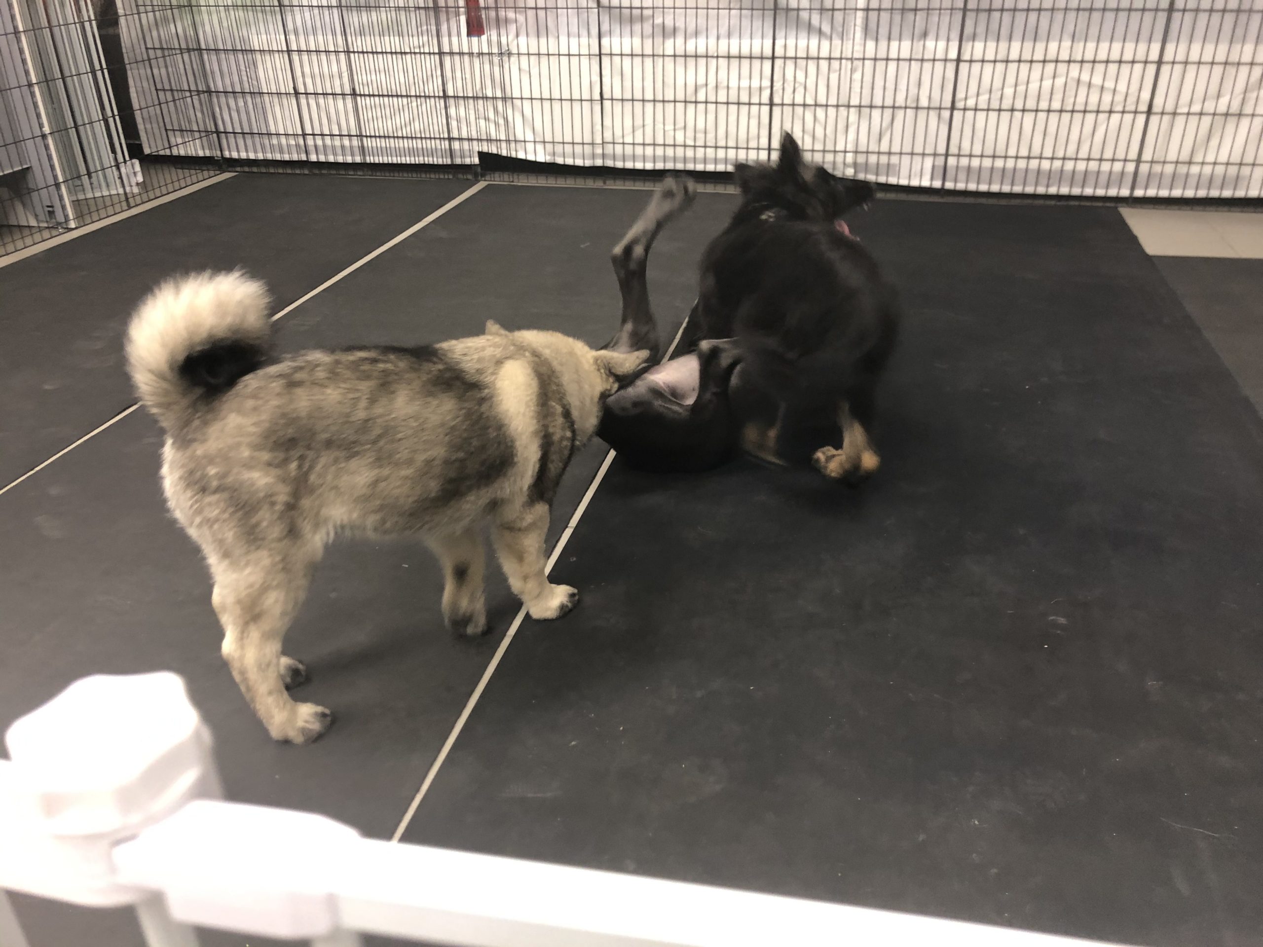 Sitten ollaan käyty Haminan Mustissa ja Mirrissä pentutreffeillä kaksi eri kertaa, ja molemmilla kerroilla oli uudet leikkikaverit: