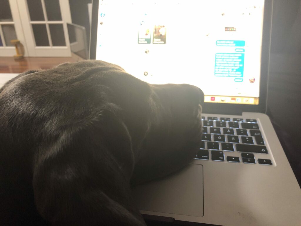 Kun aamulla Äiti puuhastelee töihin lähtöä, istuu Venla ulko-oven edessä kiinni liimattuna, jos vaikka tänään Venla pääsisi mukaan. (Venla pääsee töihin noin kerran viikossa, mutta se ei estä yrittämästä mukaan lähtemistä kuutena muunakin päivänä viikosta + ne kaikki muut kerrat, kun ovesta liikutaan ulos ja sisään). Kun Äiti julmasti hylkää pienen lapsen kotiin, itketään Äitin perään surkeana pari minuuttia.