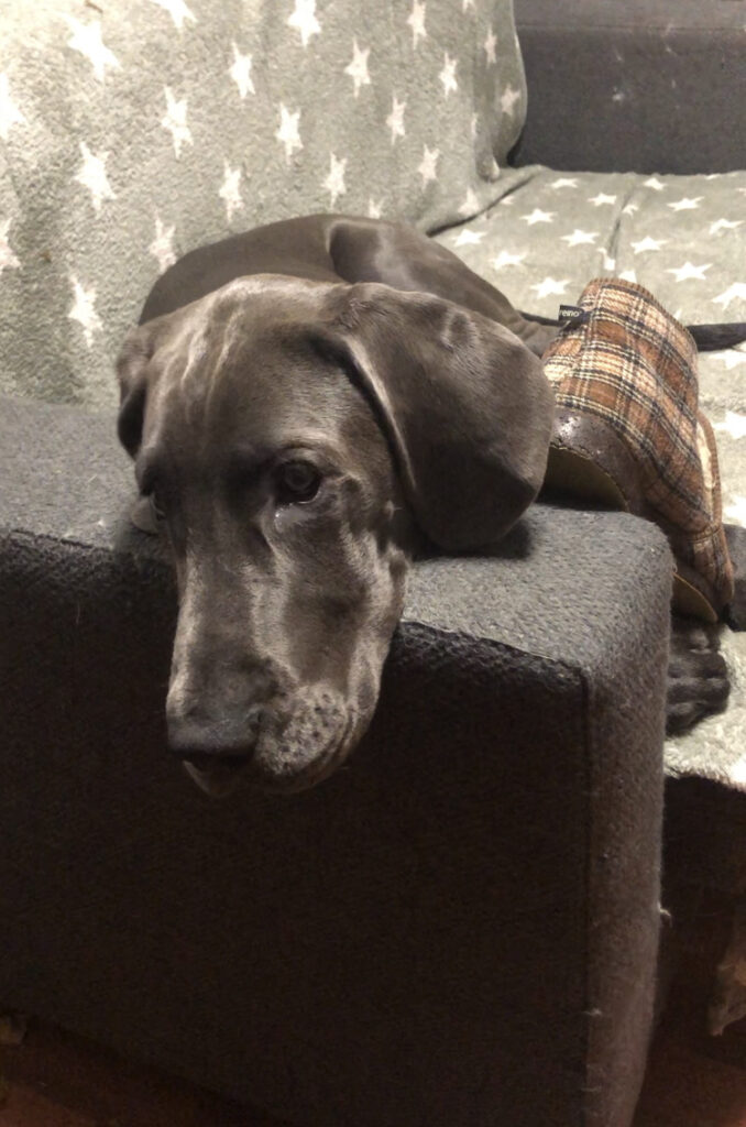 Päiväsaika vietetään pääsääntöisesti ihan OK rauhaksiin ja nukkuen, mutta jos jossain vaiheessa päivää sattuisi heräämään, voisi olla että Baby Shark Teeth saattaisi osua johonkin mukavantuntuiseen natustettavaan… Tämä herkullinen kohta on sittemmin blockattu, miksiköhän, kun se oli niin sopivasti siinä sohvan käsinojan nurkallakin vielä – juuri hampaiden korkeudella!