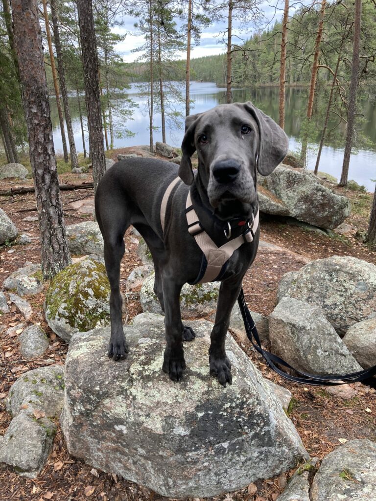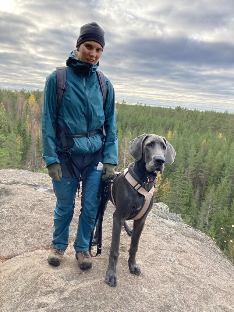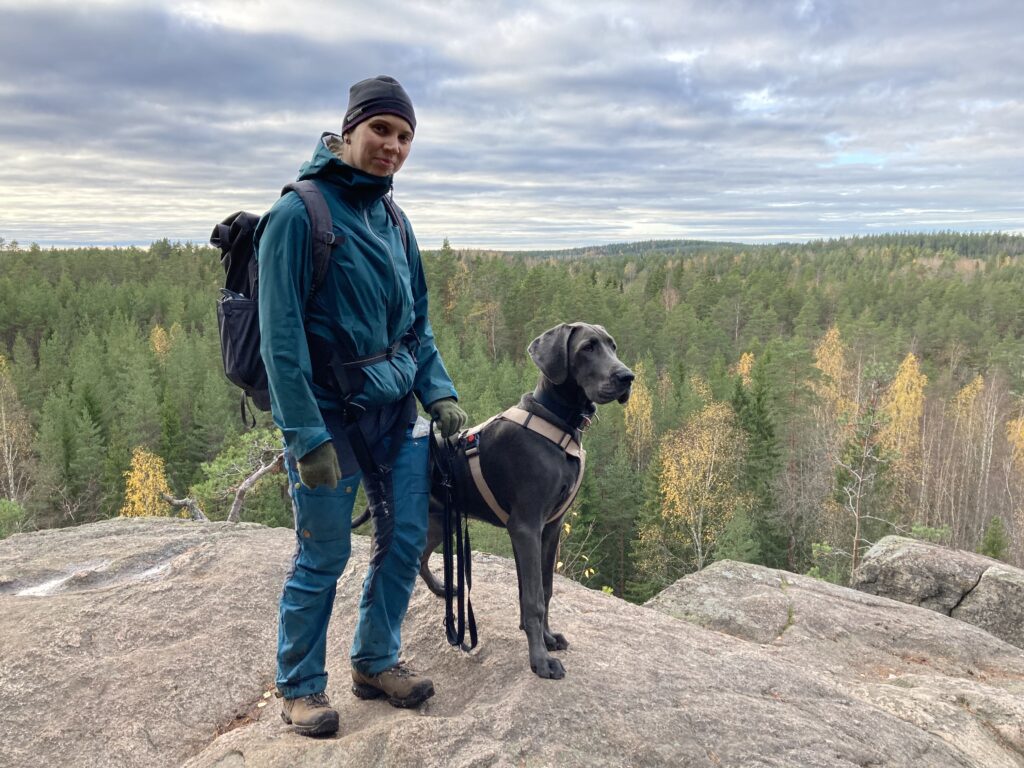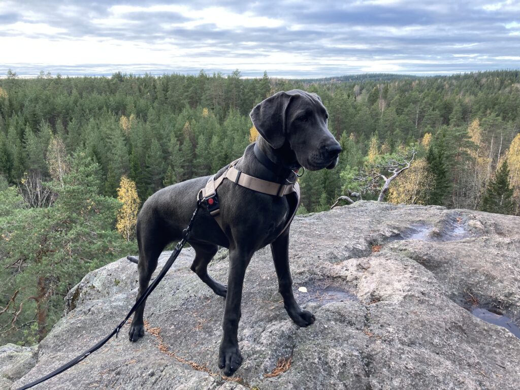 Venlan kanssa oli kyllä todella kiva kulkea tuolla maastossa. Siitähän on siis tulossa aivan upea retkikaveri. Venla on täynnä intoa ja tarmoa ja uteliaisuutta ja rohkeutta tehdä ihan mitä vaan ja hypätä mukaan ihan mihin vaan. Sille ei tule olemaan este kiivetä haastavia maastoja, kuten kivikoita, siltoja, rappusia tai vesiesteitä. Jospa sille olisi jäänyt jotain mieleen myös tämänkertaisen taukopaikan loistavasta rauhoittumisesta ja lepäämistuokiosta.