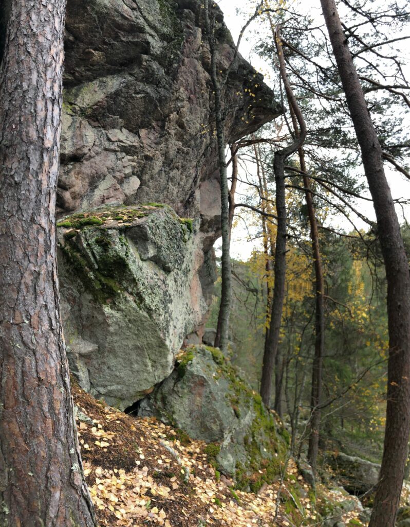 Yhdessä kohdassa reittiä Kapiaveden rannan reunaa pitkin kulkee pieni kivetty polku aivan kallion vieressä kiinni, rantavettä hipoen. Polku muodostuu kivistä, se on kapea, ja rajoittuu toisella puolella kallionseinään ja toisella loiskahdukseen. Joissain kohdin kivillä tasapainoillessaan sitä saa jo ihan miettiä askeliaankin, mutta aina on onneksi kuivin jaloin selvitty. Niin tälläkin kertaa. Myös Venla tasapainoili ja hyppeli kivillä kuin – sanottakoon se taas – vanha tekijä.
