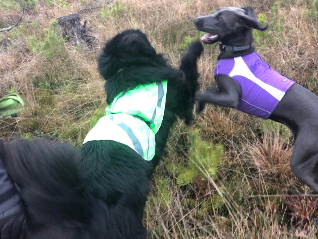 Tämä koira tarvitsee leikkikaverin. Painikaverin. Juoksukaverin. Purutyynyn (joka on joku muu kuin minä). Ja kyllähän se koira, ikään ja energiatasoon katsomatta, nauttii toisen lajitoverin seurasta.