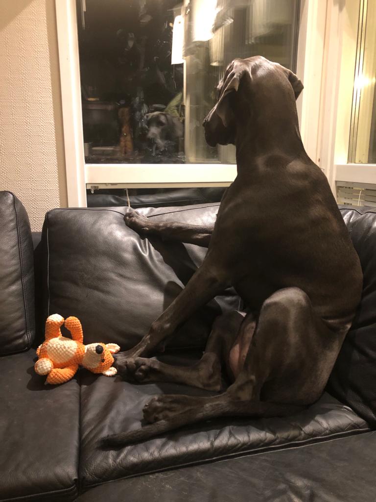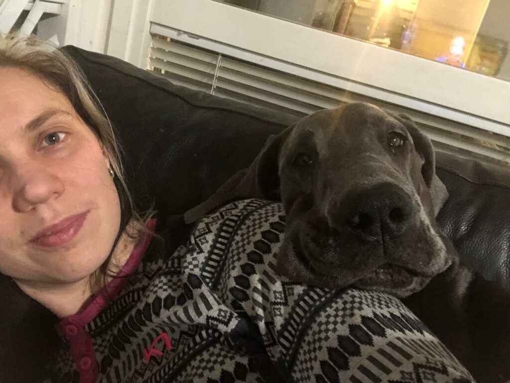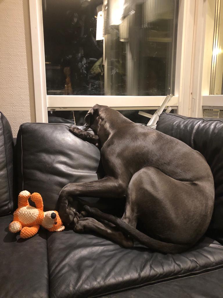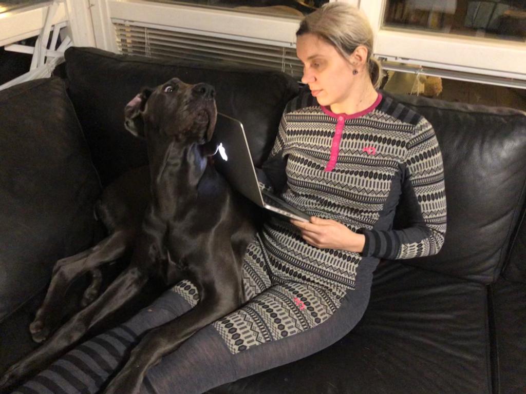 Venlan tarve halia ja olla lähellä tällaisina poikkeuksellisina aikoina, joina Äiti ei ehkä tulekaan joka ilta sohvalle halimaan, oli lähellepääsy niin läpitunkevaa, että luulin koiran jo hetkittäin yrittävän kaivautua ihon alle?!