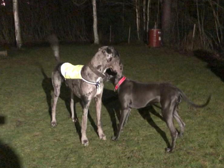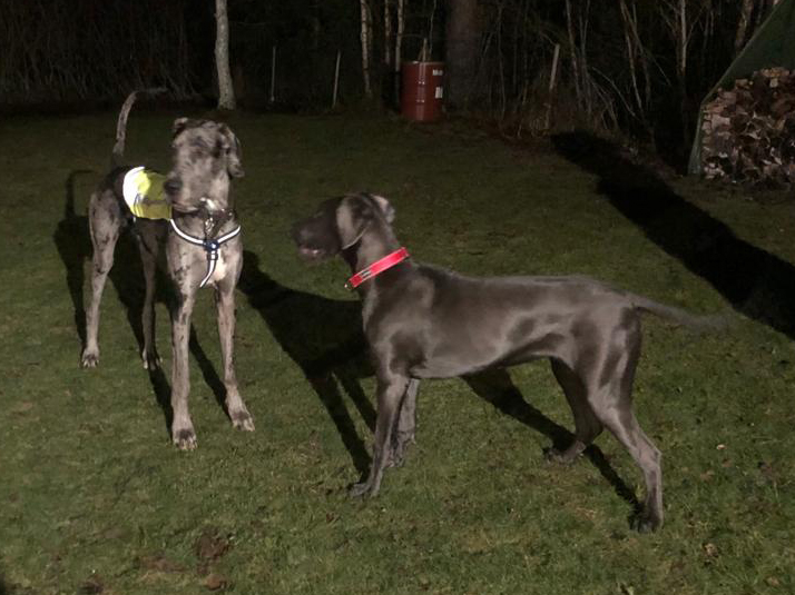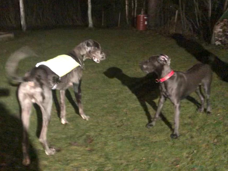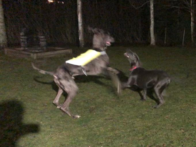 Pepen ja Venlan leikit menivät hienosti yksiin. Yhteinen sävel löytyi heti, ja koirat vaan juoksivat ja satunnaisesti painiskelivat ja hammasmiekkailivat. Äänimaailmassa kuului vaan tantereen tumina ja leikin ähertämisen ääni – ei mitään riitasointuja. Pepe oli aivan hurmaava poika. <3