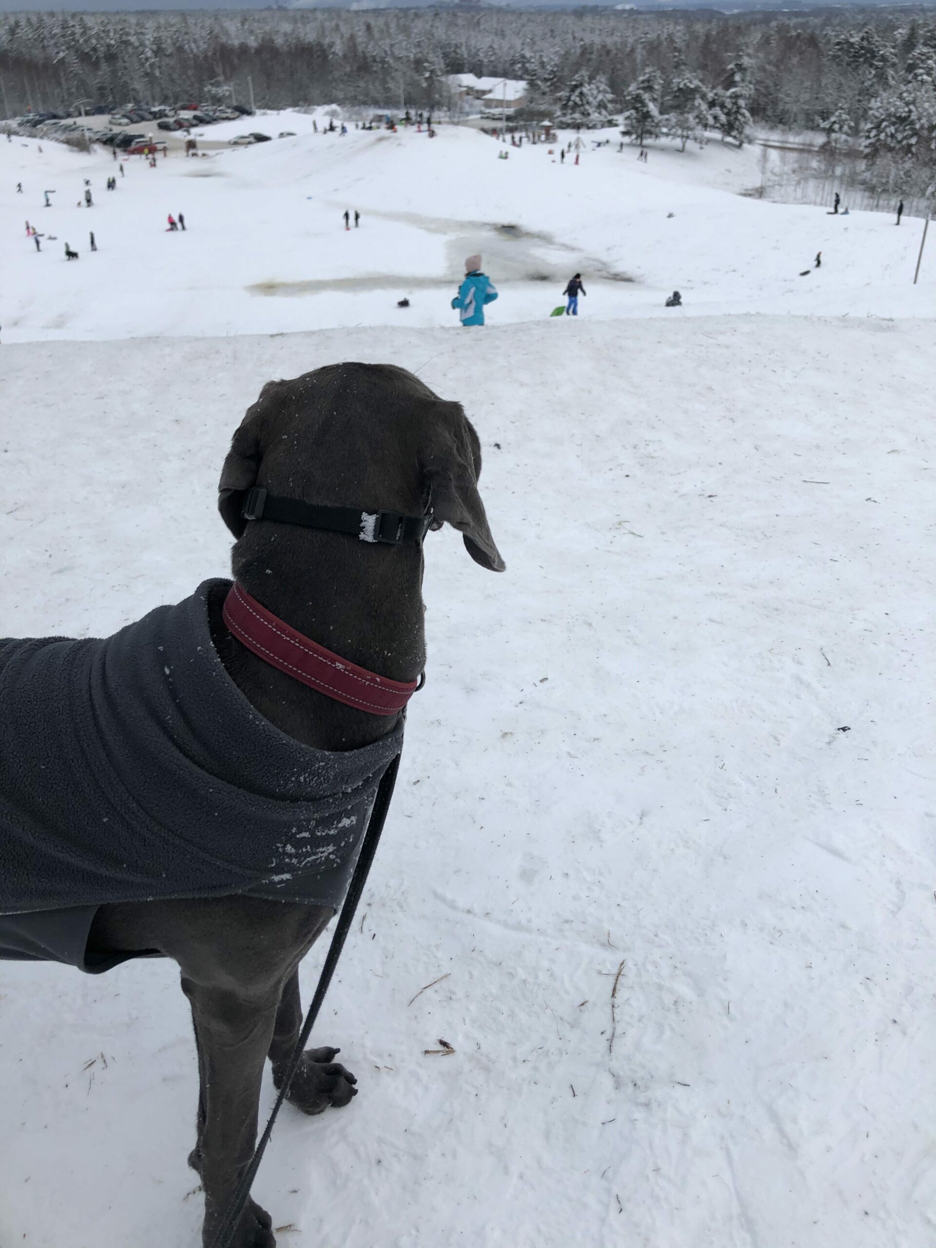 Kaikkien kiljuvien pulkkien ja stigojen sekä rauhallisesti käyttäytyvien ihmislasten ihmettely oli sen verran jännää, että loppupäivä vietettiin ihan rauhallisissa tunnelmissa kotona. Kyllä se “kylillä pyörähtäminen” aina välillä kannattaa, tekee ihan hyvää pienen koiralapsen päänupille!