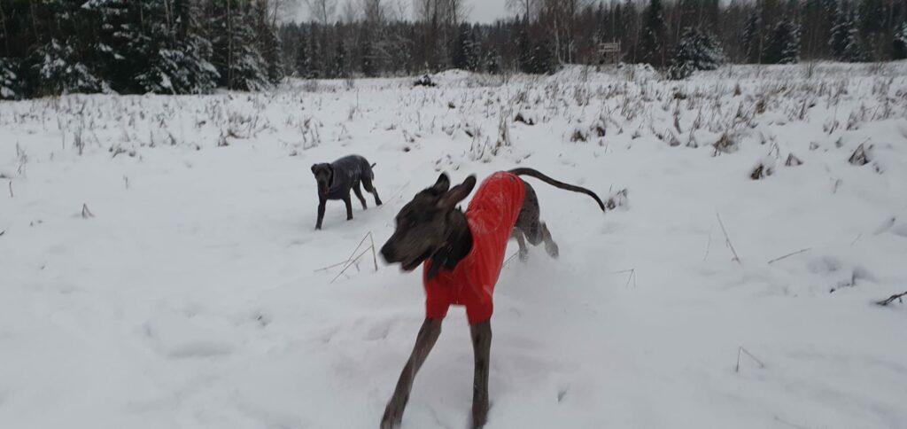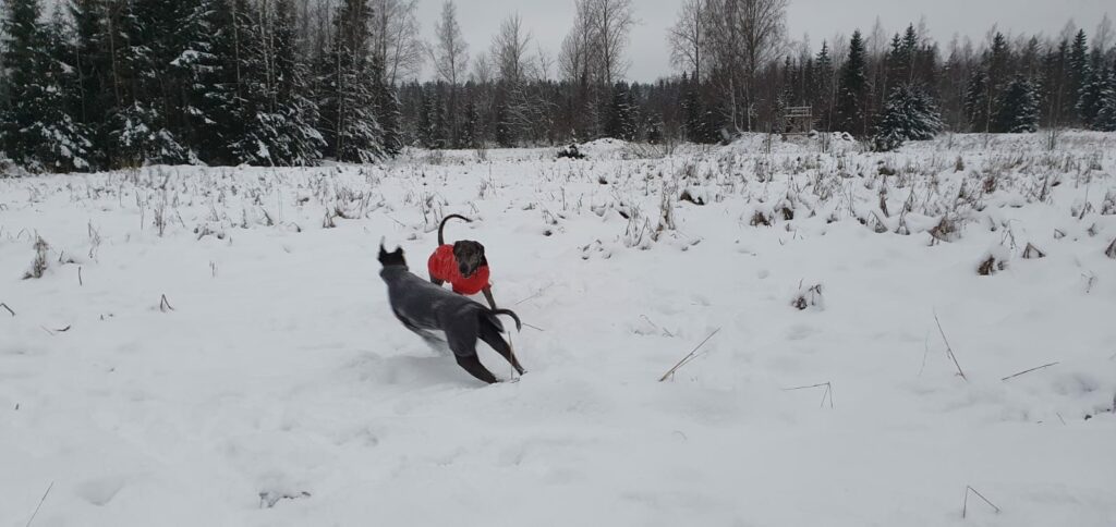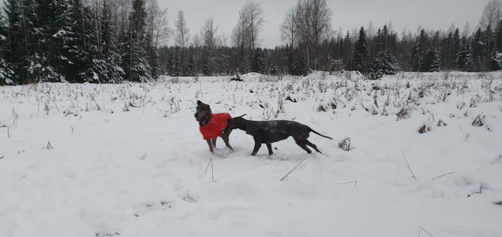 Ennen lumimyräköitä ja kovia pakkasia ehdittiin tavata Pepeä metsälenkin muodossa. Nyt, nyt saatiin niitä valoisan ajan kuvia! …Mutta ei niistä silti juuri enempää selvää saa kuin hämärälläkään otetuista kuvista, sillä se vauhti, se vauhti… 🙂 Kristalle kiitos suurimmasta osasta seuraavista kuvista – hänen onnistui taltioida hyviä otoksia!