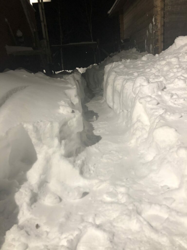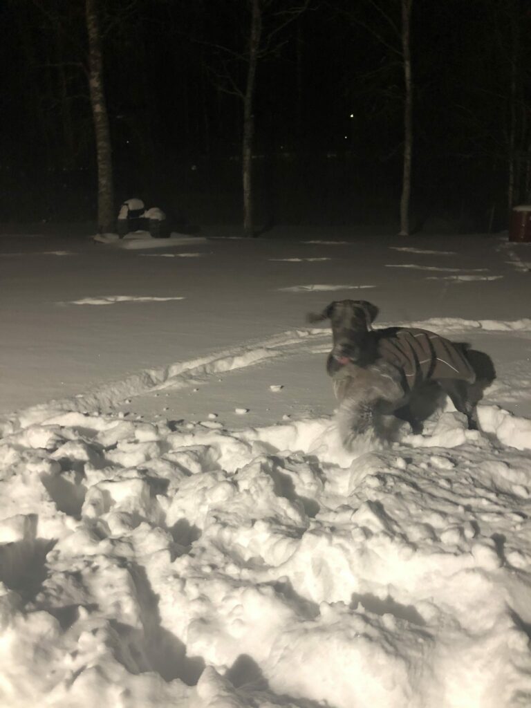 No niin, nyt on sitten oikeasti talvi! Uuden vuoden kieppeillä satanut lumi on pysynyt maassa – ja myös lisääntynyt moninkertaisesti. Tällä viikolla talvinen lumimyrsky toi tullessaan parin päivän aikana noin 40 cm lunta. Saa muuten Venlakin tehdä jo vähän töitä hangessa tarpoessaan.