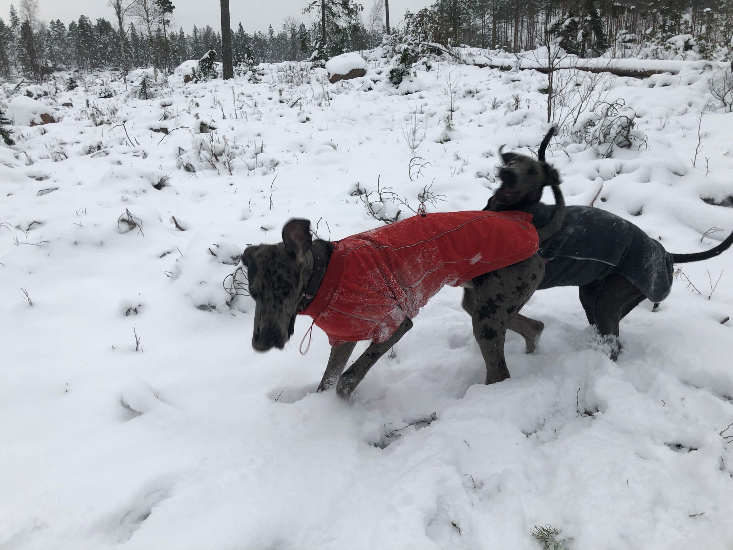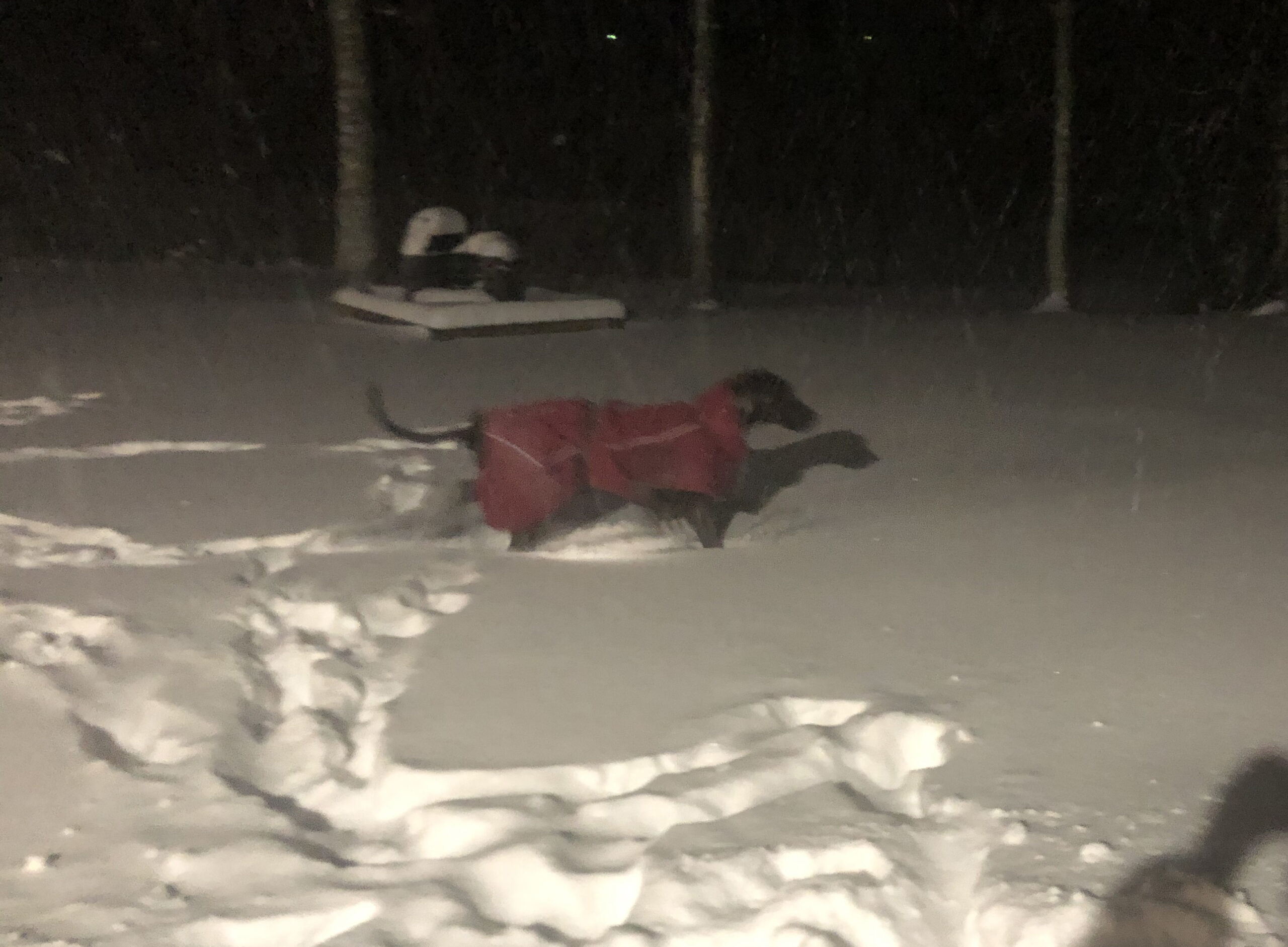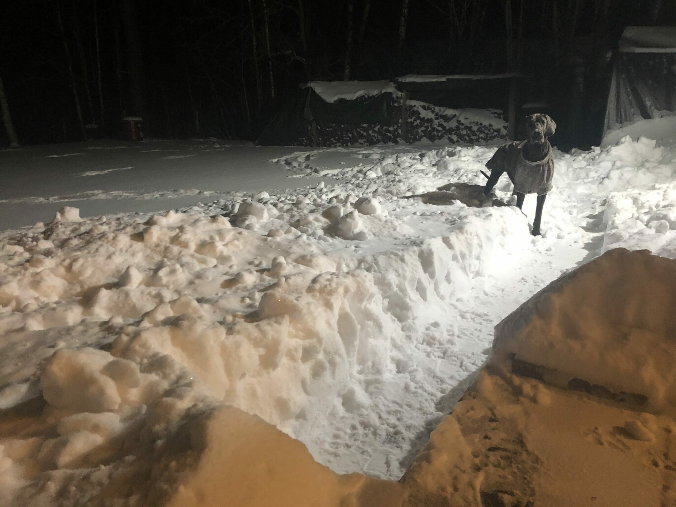 No niin, nyt on sitten oikeasti talvi! Uuden vuoden kieppeillä satanut lumi on pysynyt maassa – ja myös lisääntynyt moninkertaisesti. Tällä viikolla talvinen lumimyrsky toi tullessaan parin päivän aikana noin 40 cm lunta. Saa muuten Venlakin tehdä jo vähän töitä hangessa tarpoessaan.