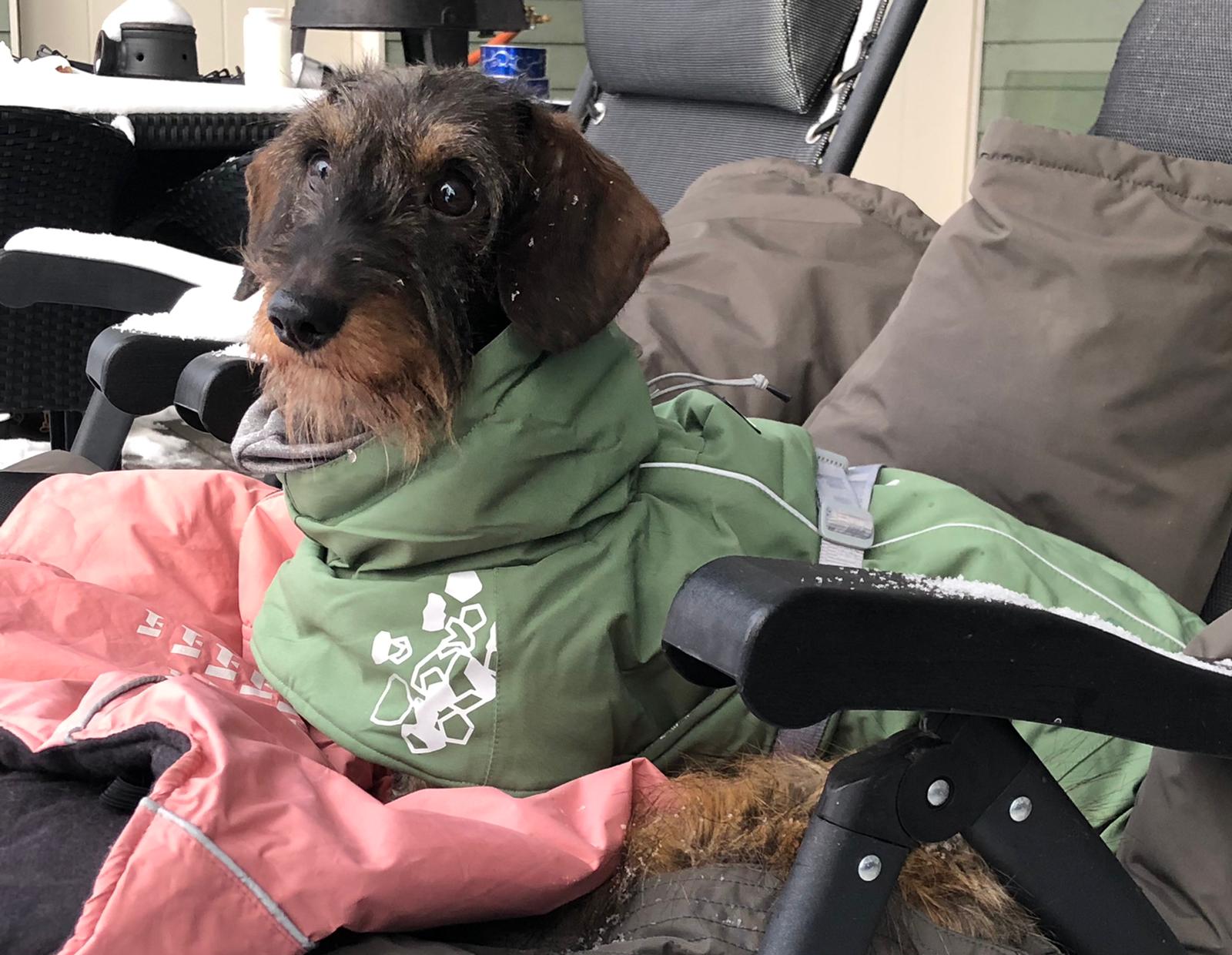 Tiitu-mäyräkoira katsoi parhaimmakseen pitäytyä enemmän terassin turvassa, poissa isojen koipien keskeltä. Ja jos oikein surkealta yritti näyttää vähän vielä tärisi, niin pääsi hellämielisten tätien syliin saamaan erityiskohtelua. No mutta sitähän pitää tulla vähintään jo siksi, että Hän on kuitenkin Mäyräkoira!